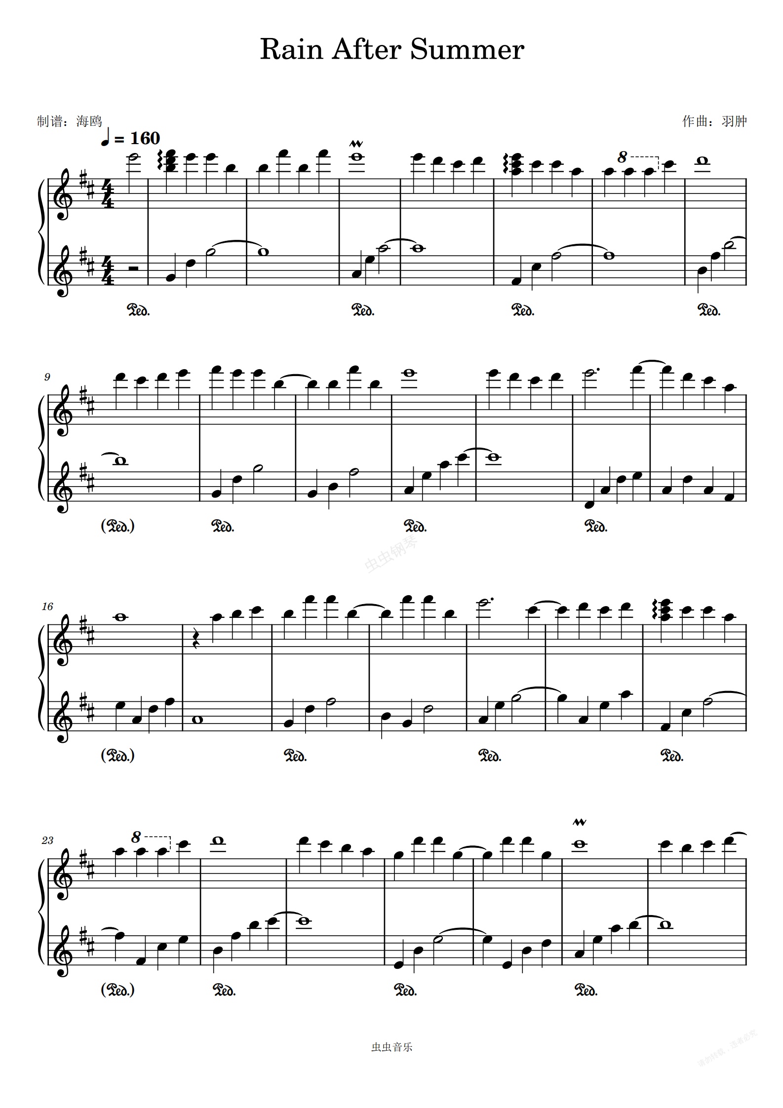 钢琴谱:Rain after Summer 羽肿