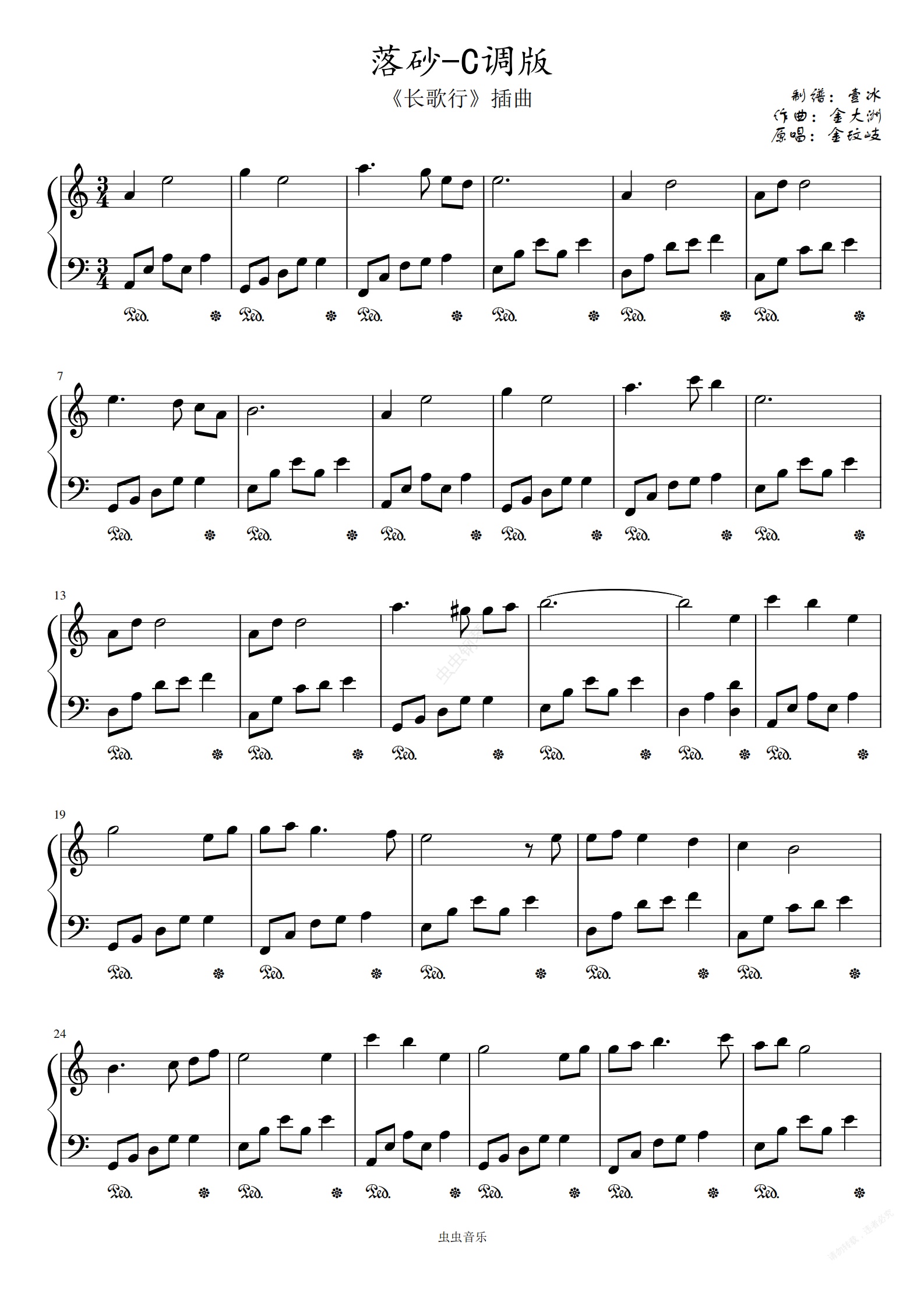 钢琴谱:落砂//《长歌行》插曲-C调简单易上手