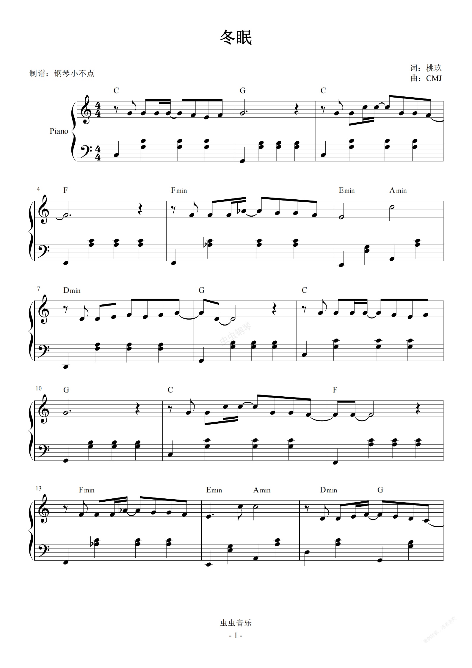钢琴谱:冬眠 简易版