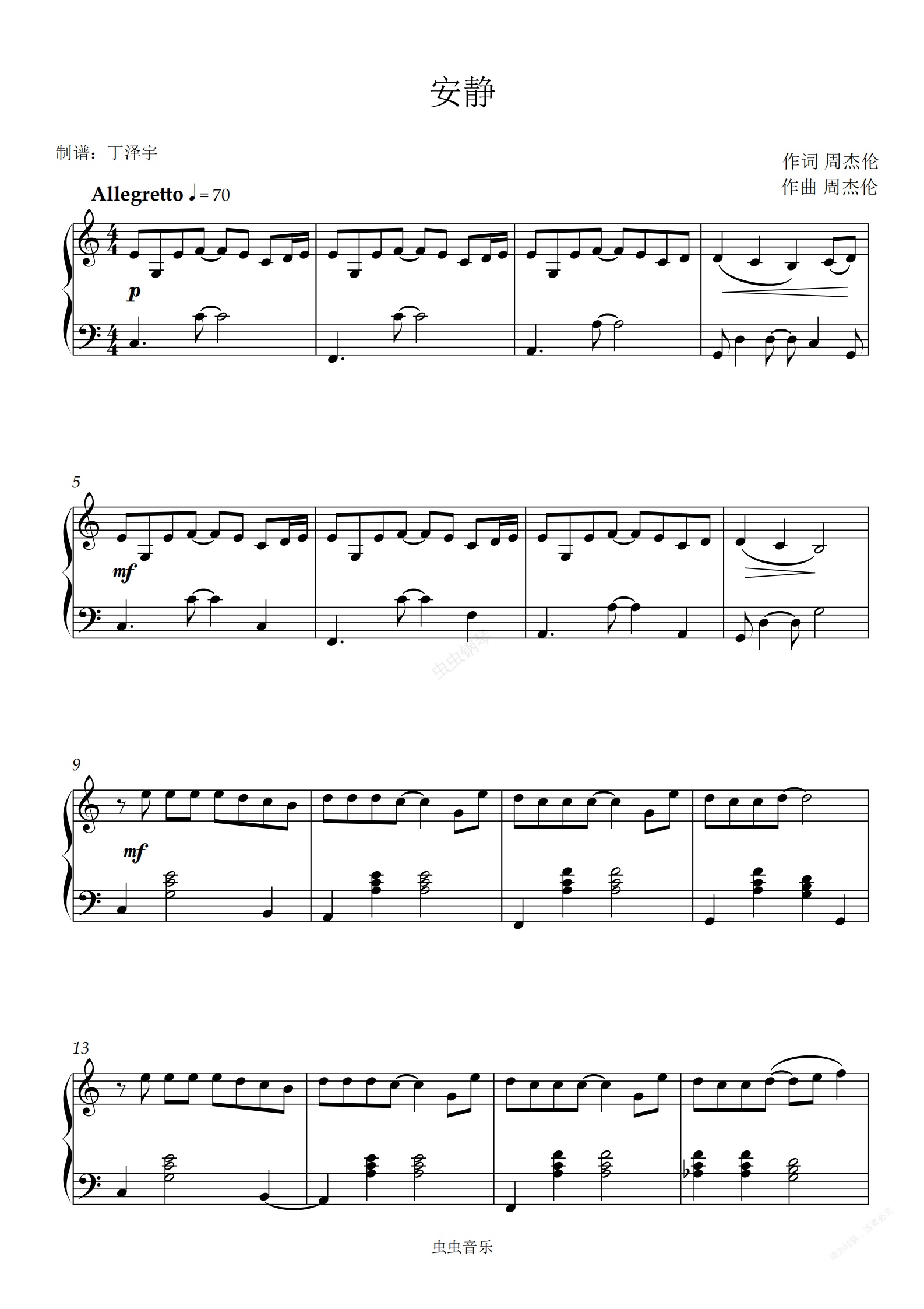 钢琴谱:安静-周杰伦 C调钢琴谱