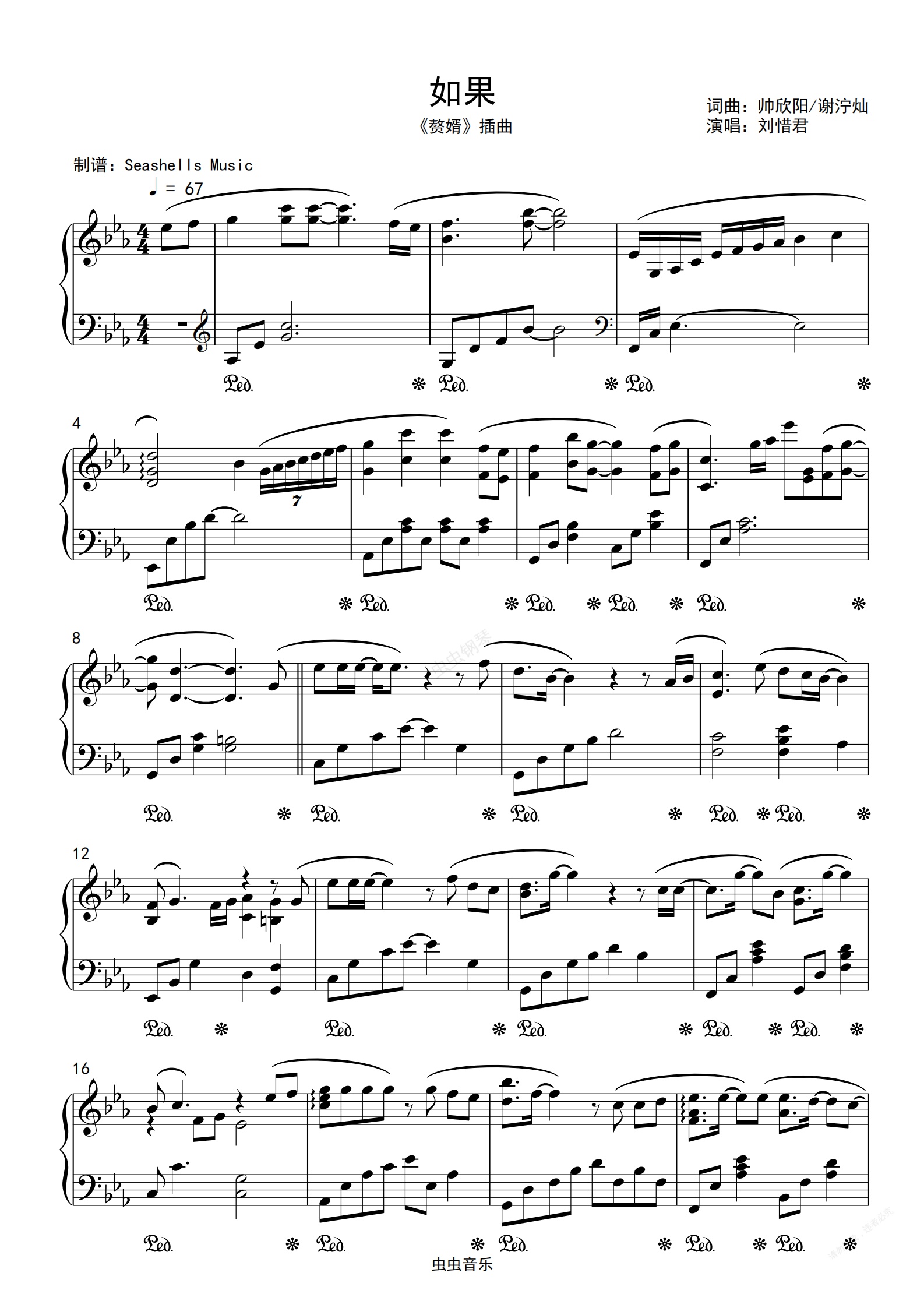 钢琴谱:刘惜君-《如果》精编钢琴独奏 赘婿插曲