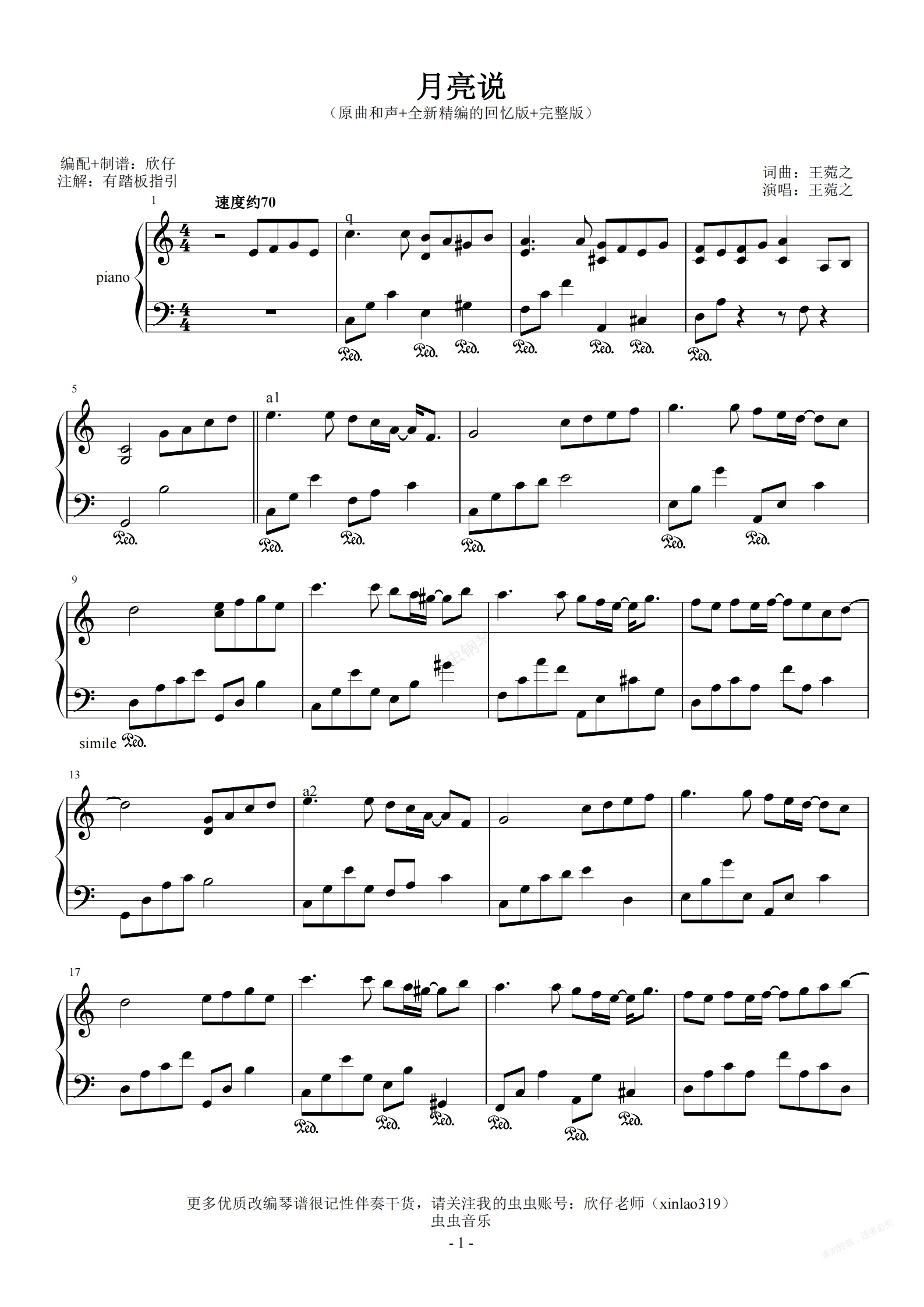 钢琴谱:王菀之-C-《月亮说》(精编回忆+完整版)