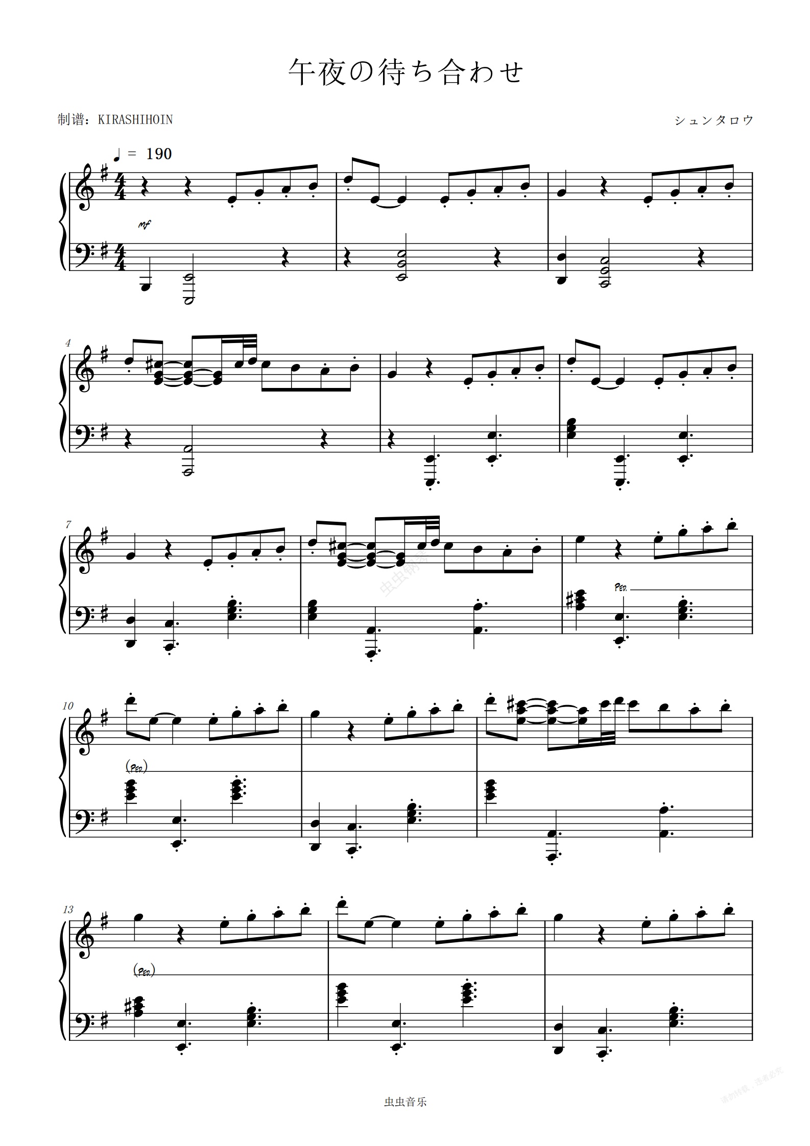 钢琴谱:午夜の待ち合わせ(《野良神》OP)