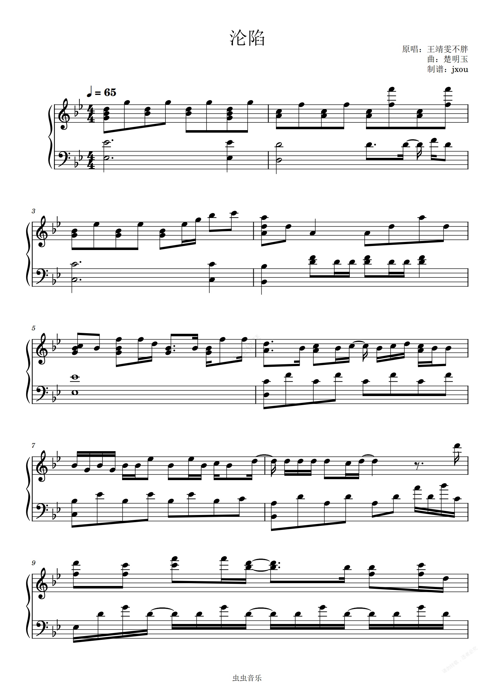 钢琴谱:沦陷 王靖雯不胖 原调完美还原版