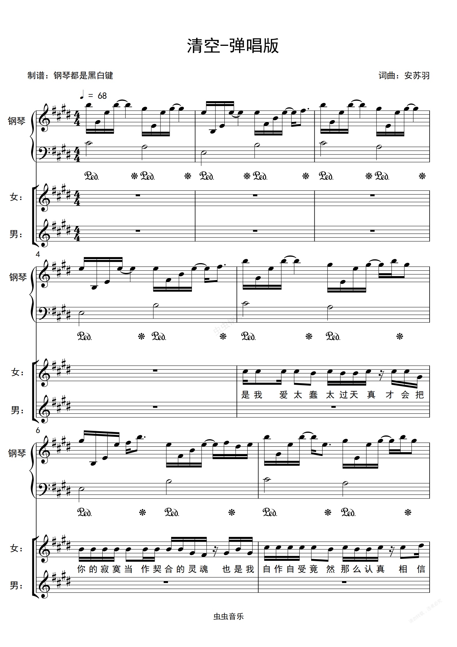 清空 弹唱版【附歌词+男女人声+实现完美弹唱自由】