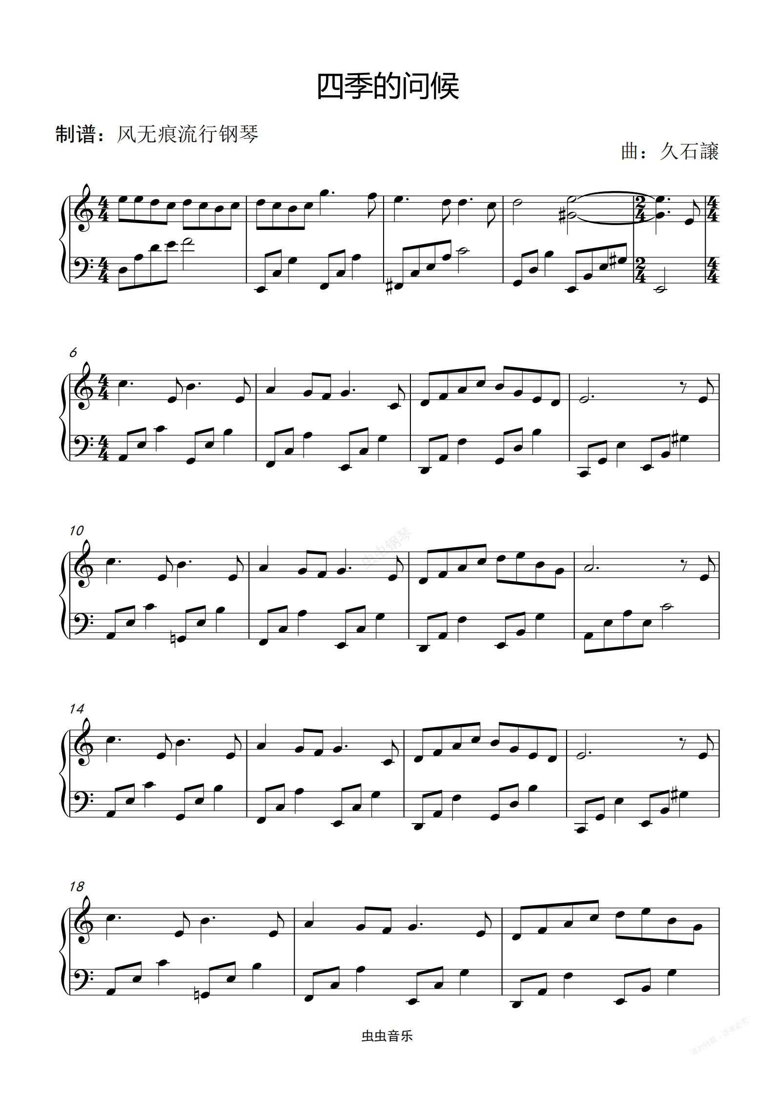钢琴谱:四季的问候-上海小荧星合唱团〖简易动听〗