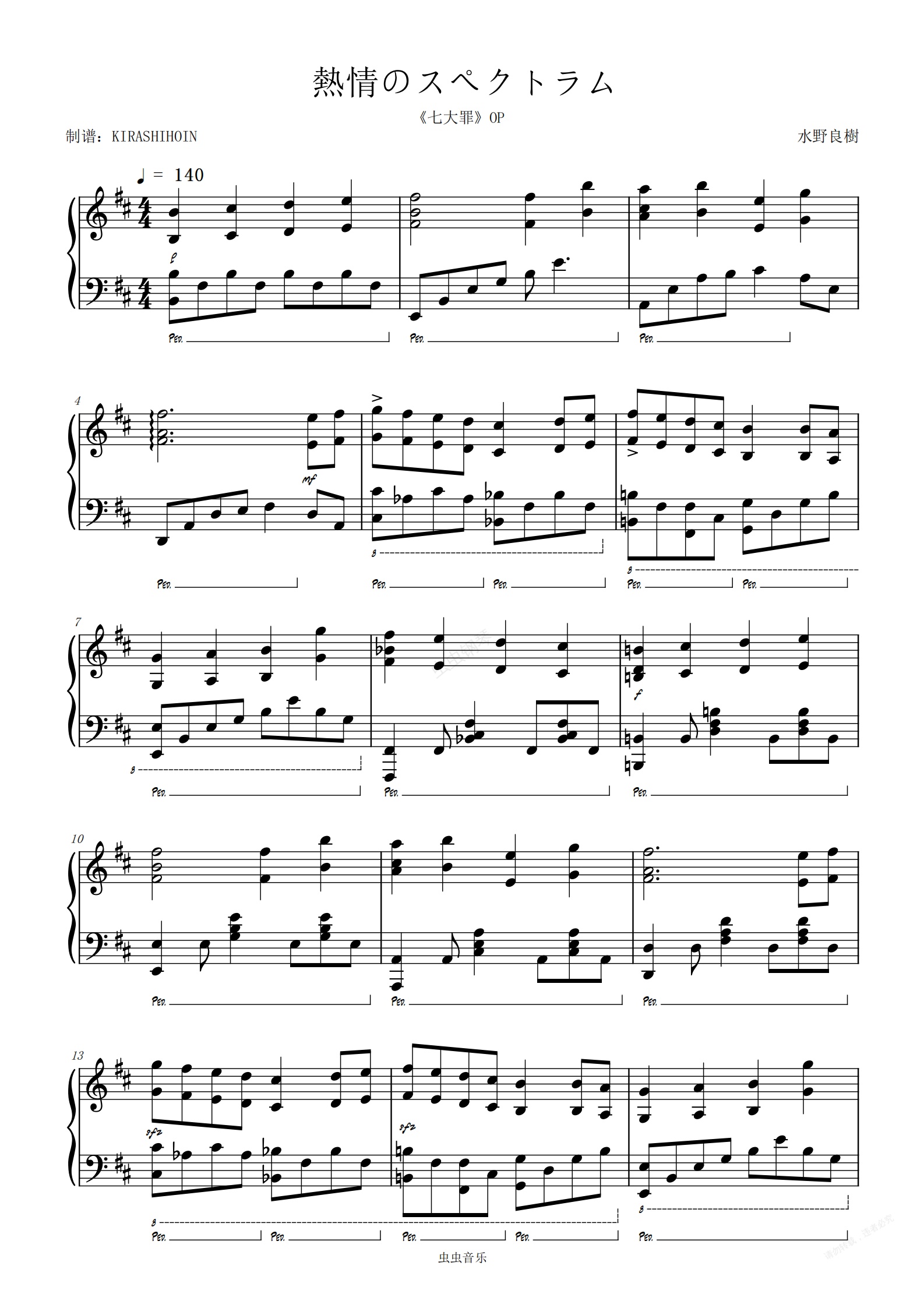 钢琴谱:热情光谱/熱情のスペクトラム(《七大罪》OP)