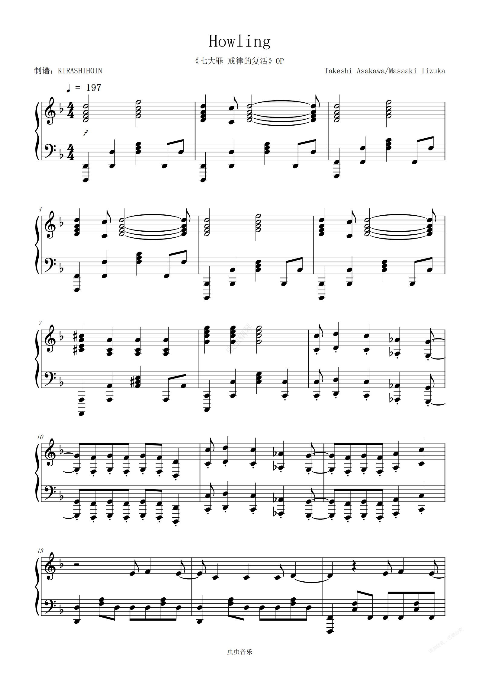 钢琴谱:Howling(《七大罪 戒律的复活》OP)