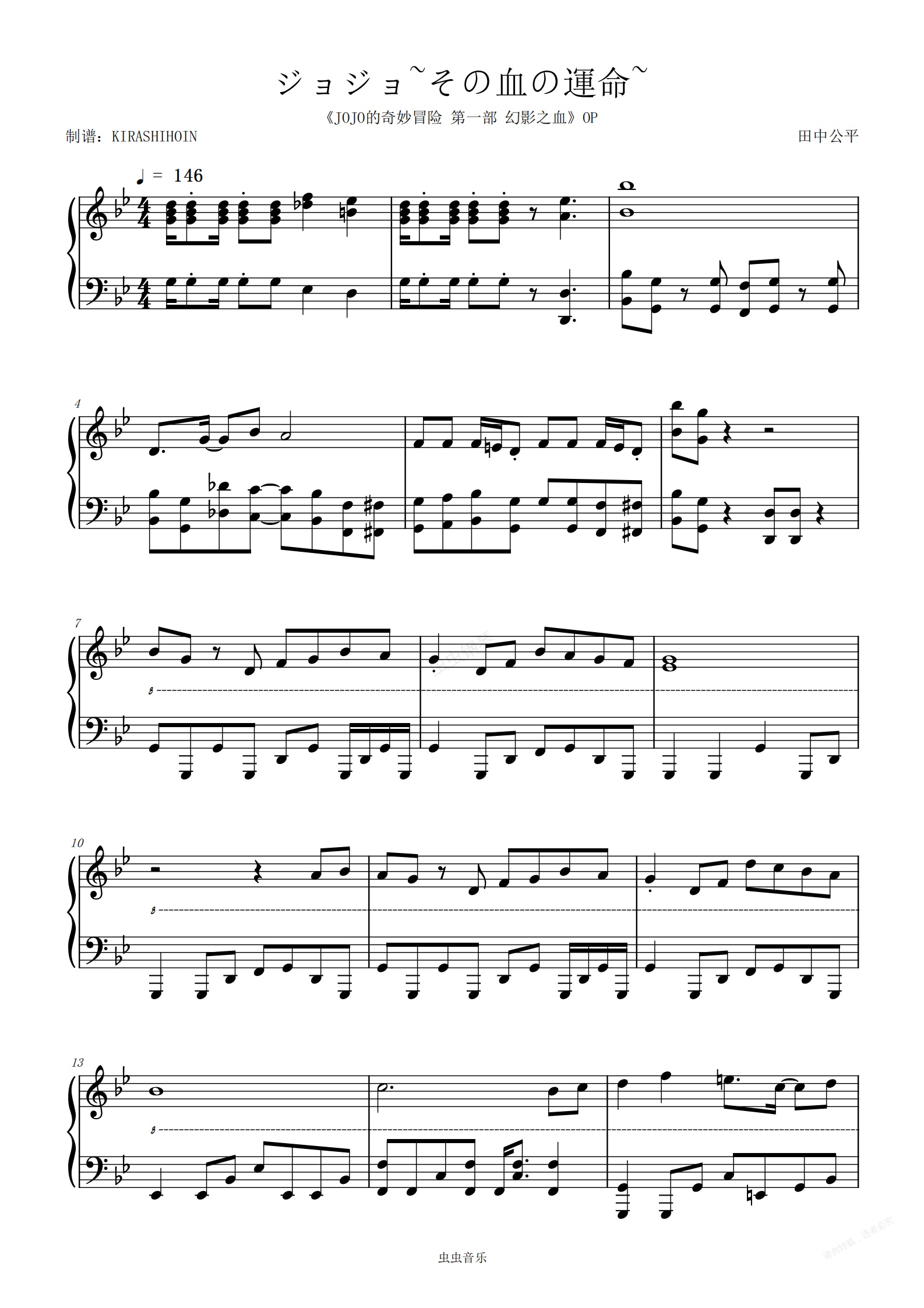 钢琴谱:ジョジョ~その血の運命~(《JOJO的奇妙冒险 第一部 幻影之血》OP)