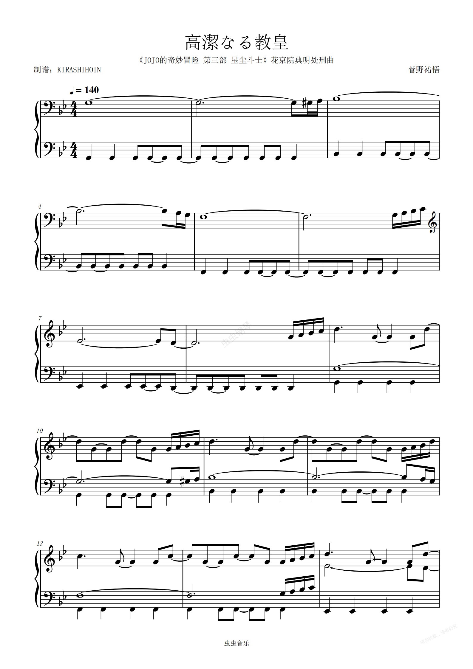 钢琴谱:高潔なる教皇/高洁的教皇(《JOJO的奇妙冒险 第三部 星尘斗士》花京院典明处刑曲)