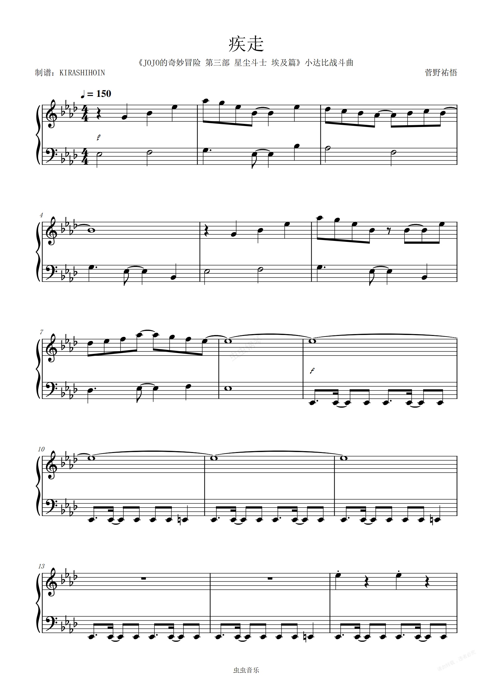 钢琴谱:疾走(《JOJO的奇妙冒险 第三部 星尘斗士 埃及篇》小达比战斗曲)