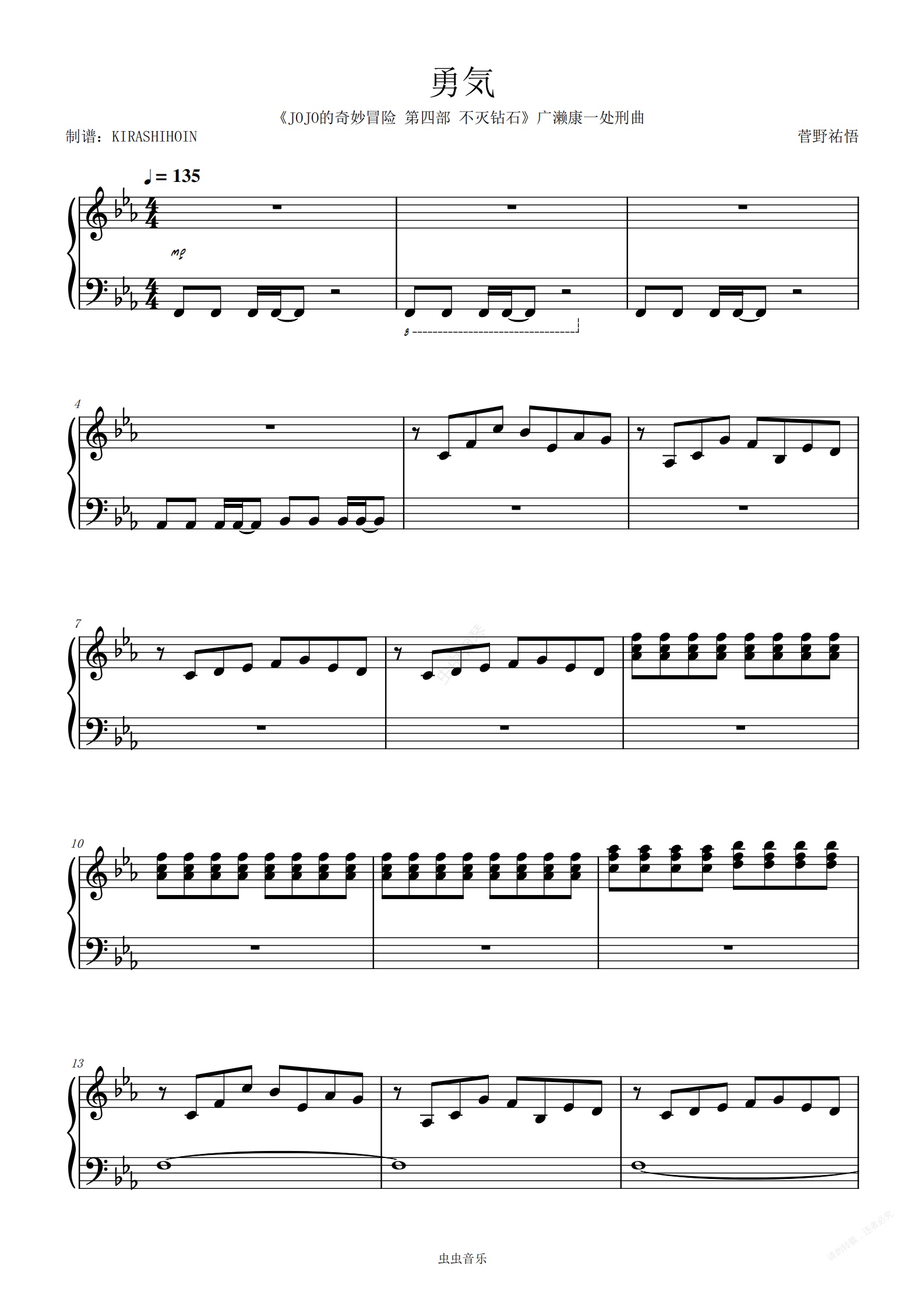钢琴谱:勇気(《JOJO的奇妙冒险 第四部 不灭钻石》广濑康一处刑曲)
