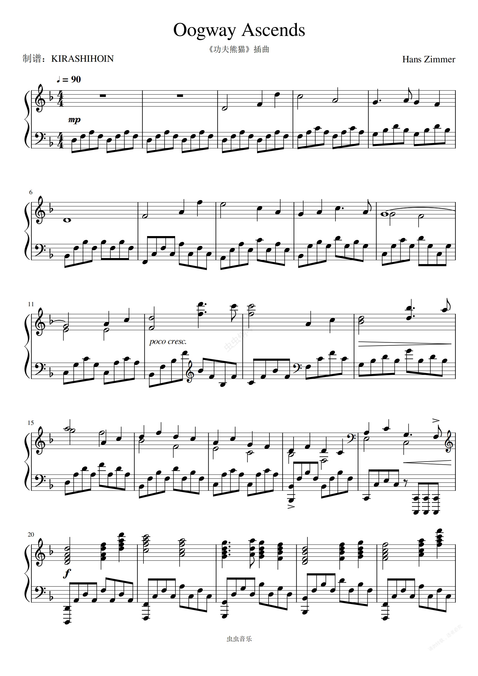 钢琴谱:Oogway Ascends(《功夫熊猫》插曲)