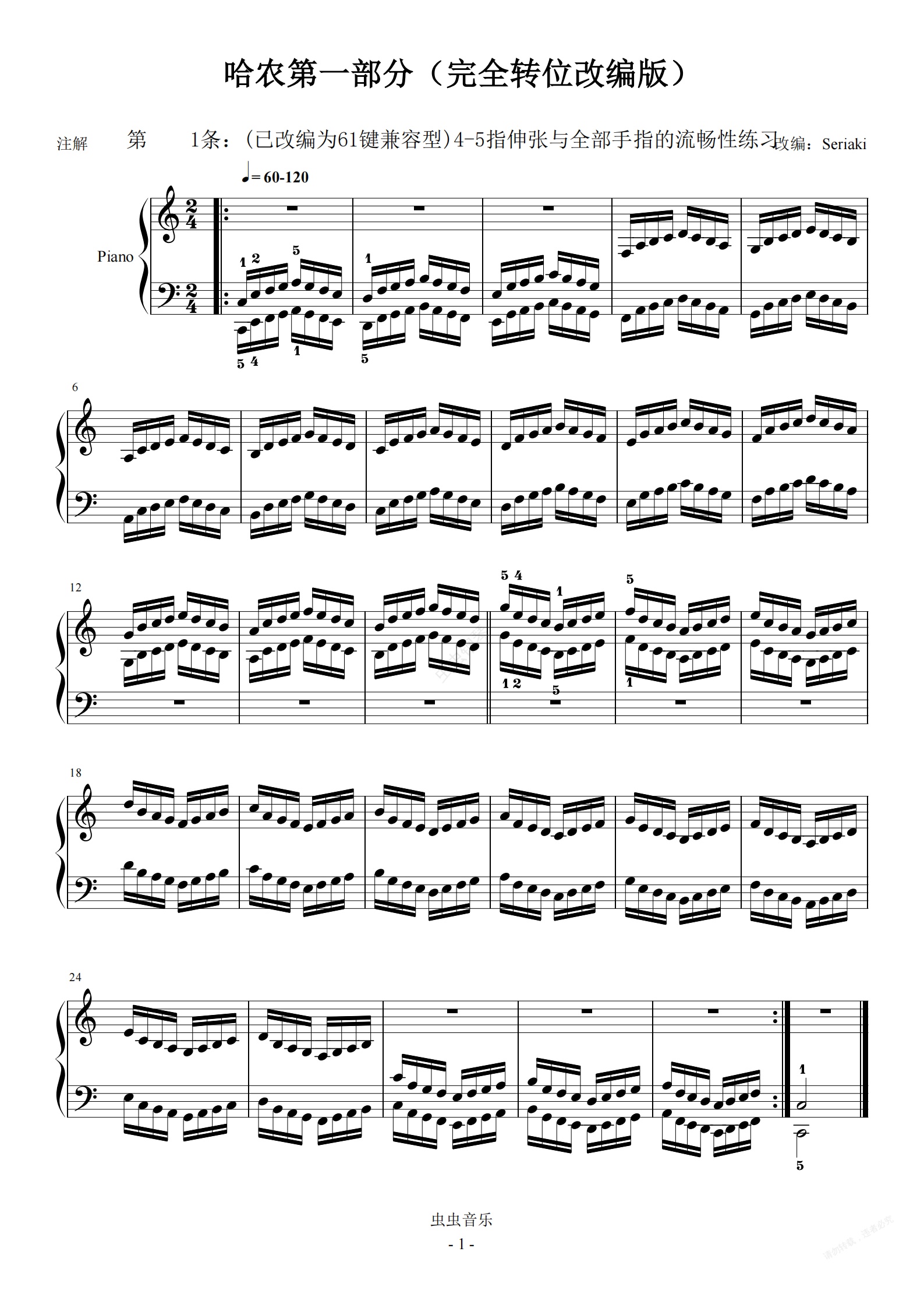 钢琴谱:哈农第一部分改编版(双手均衡练习)