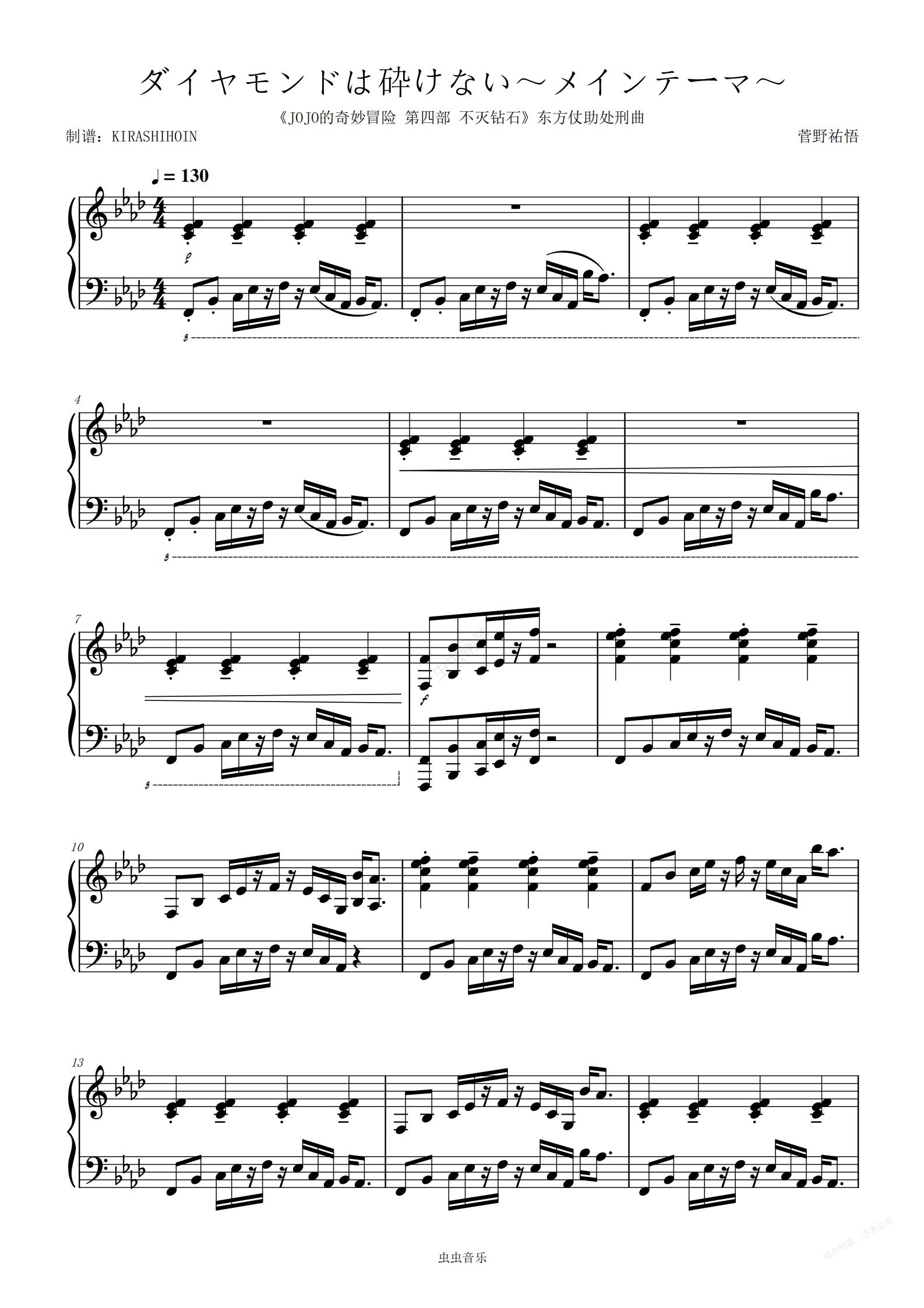 钢琴谱:ダイヤモンドは砕けない~メインテーマ~(《JOJO的奇妙冒险 第四部 不灭钻石》东方仗助处刑曲)