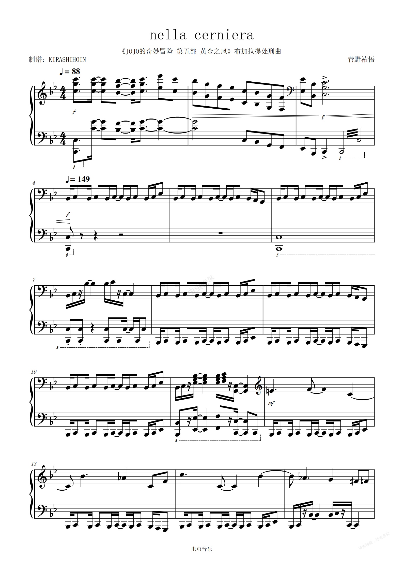 钢琴谱:nella cerniera(《JOJO的奇妙冒险 第五部 黄金之风》布加拉提处刑曲)
