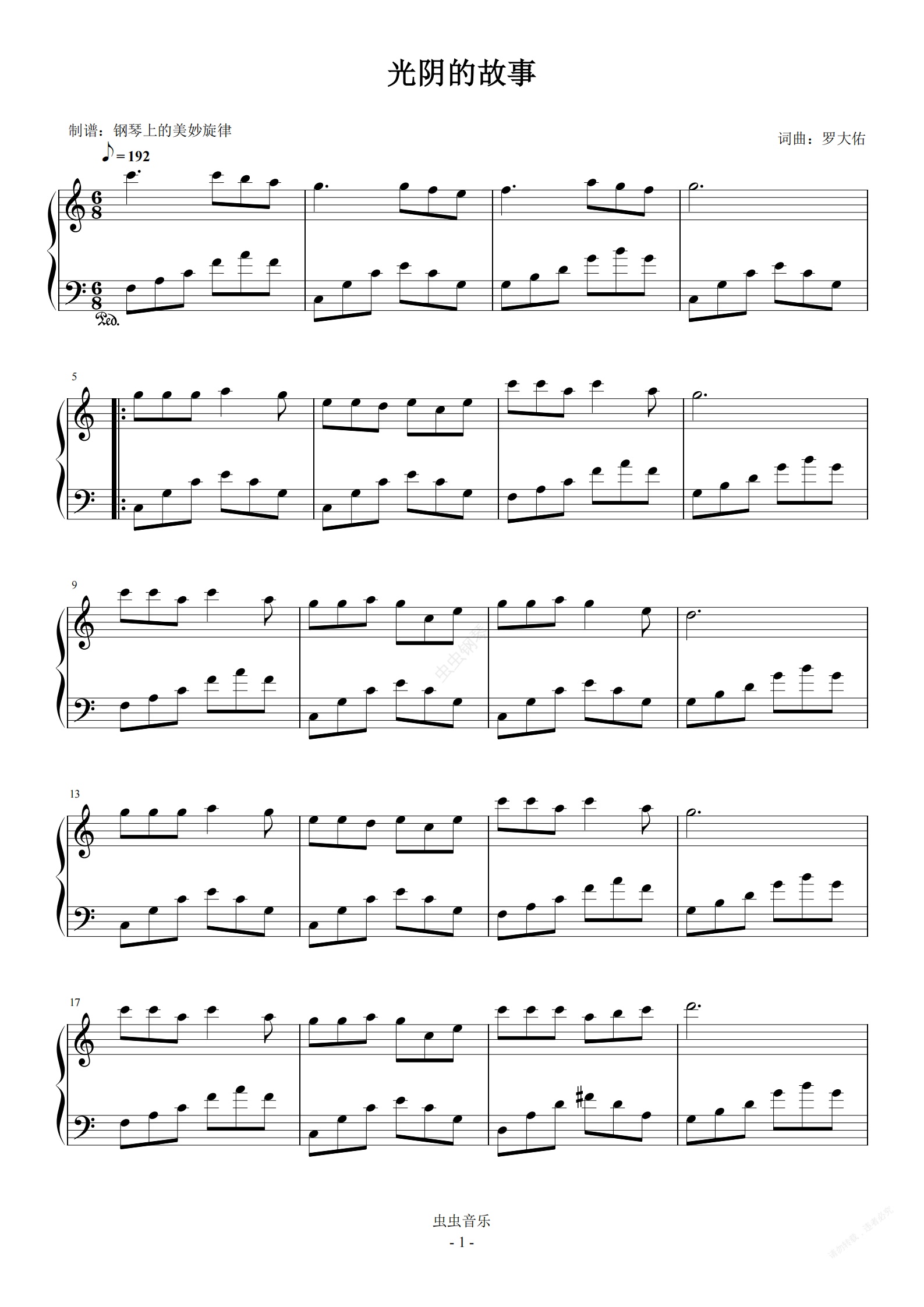 钢琴谱:光阴的故事 C调简易版本  经典的回忆