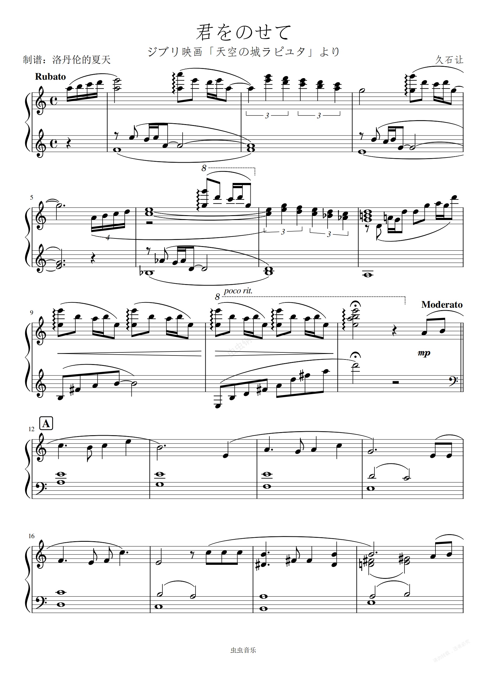 钢琴谱:【天空之城】君をのせて