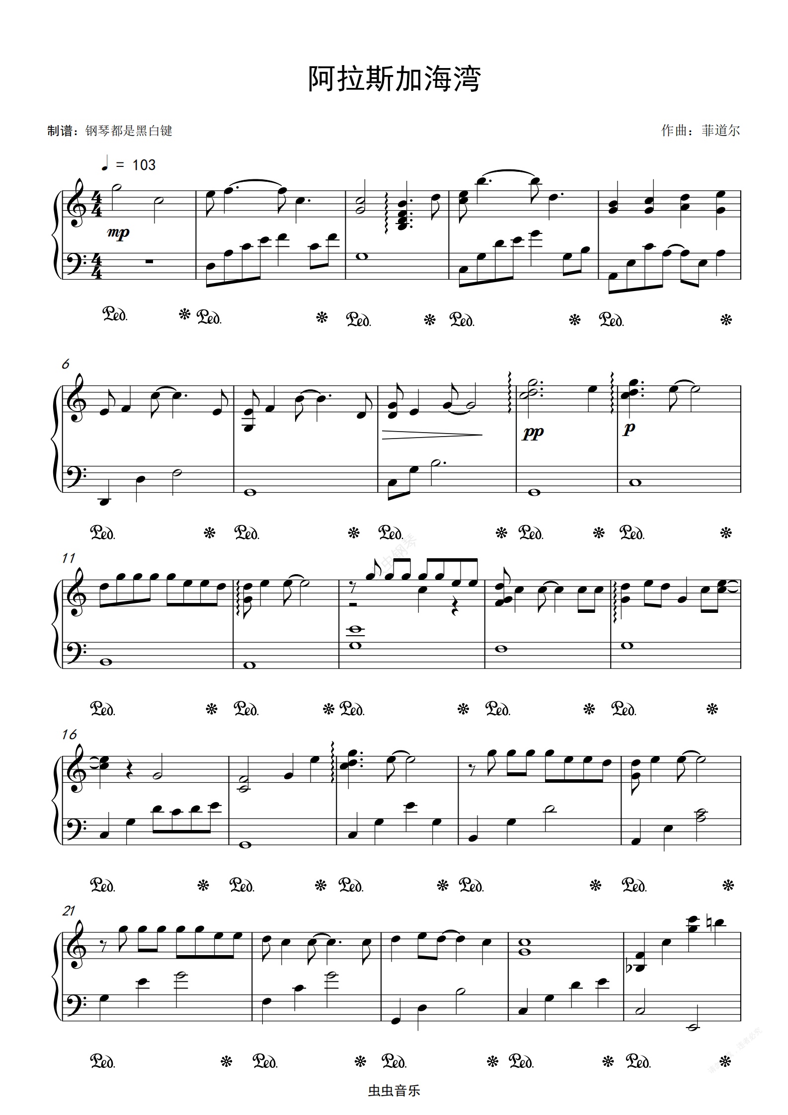 钢琴谱:阿拉斯加海湾 超好听 精品钢琴独奏