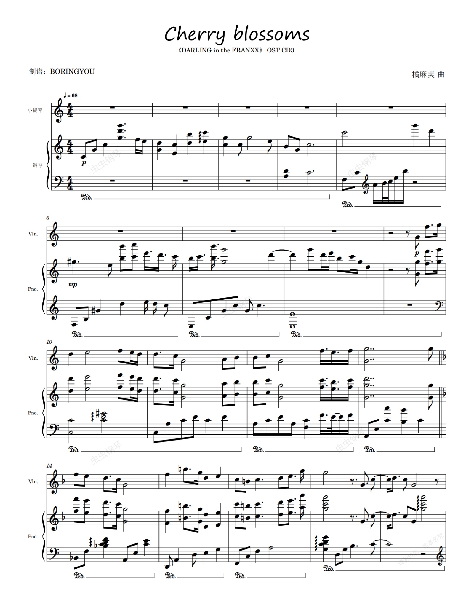 钢琴谱:Cherry blossoms(DARLING in the FRANXX OST二重奏)