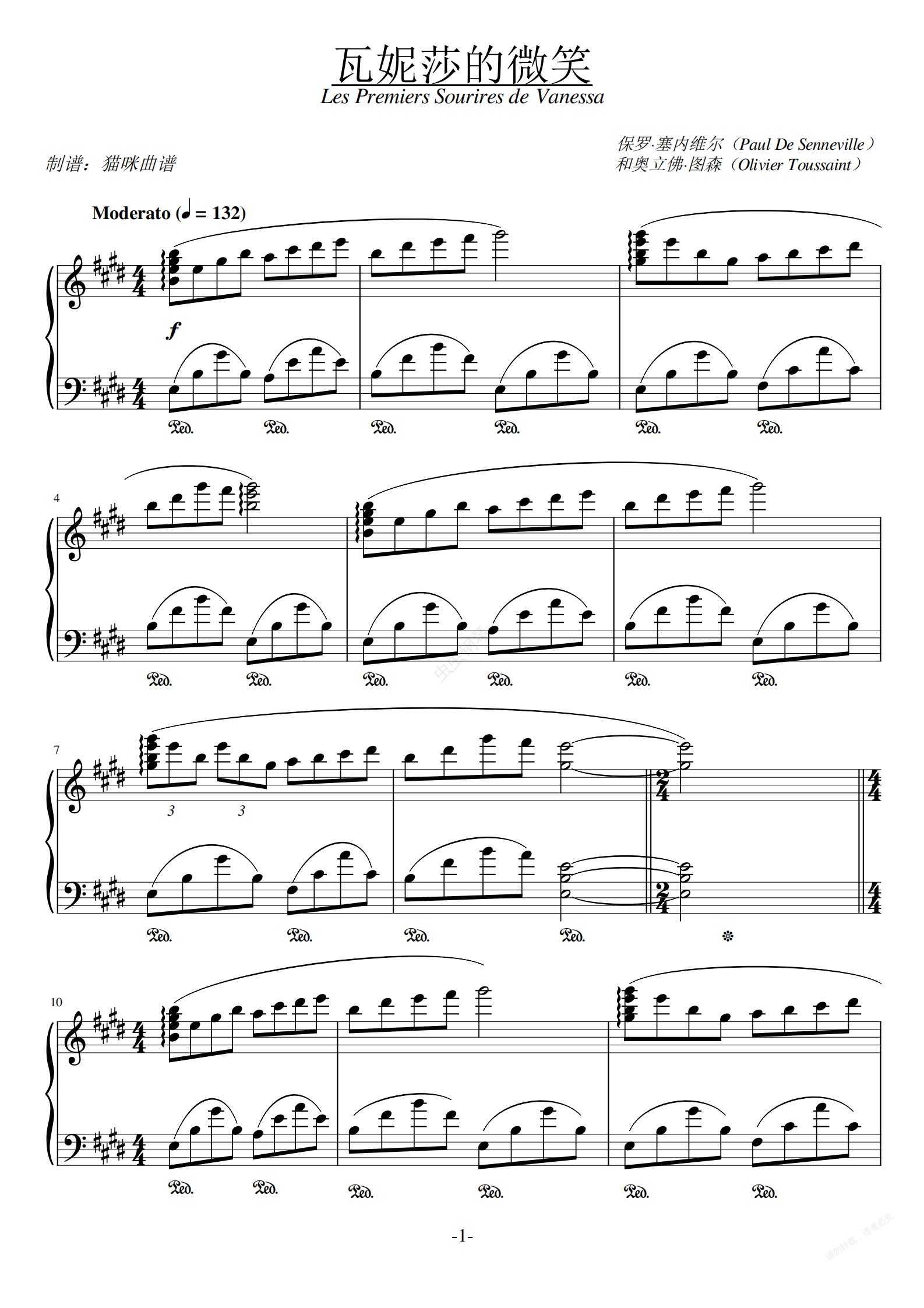 钢琴谱:瓦妮莎的微笑 Les Premiers Sourires de Vanessa