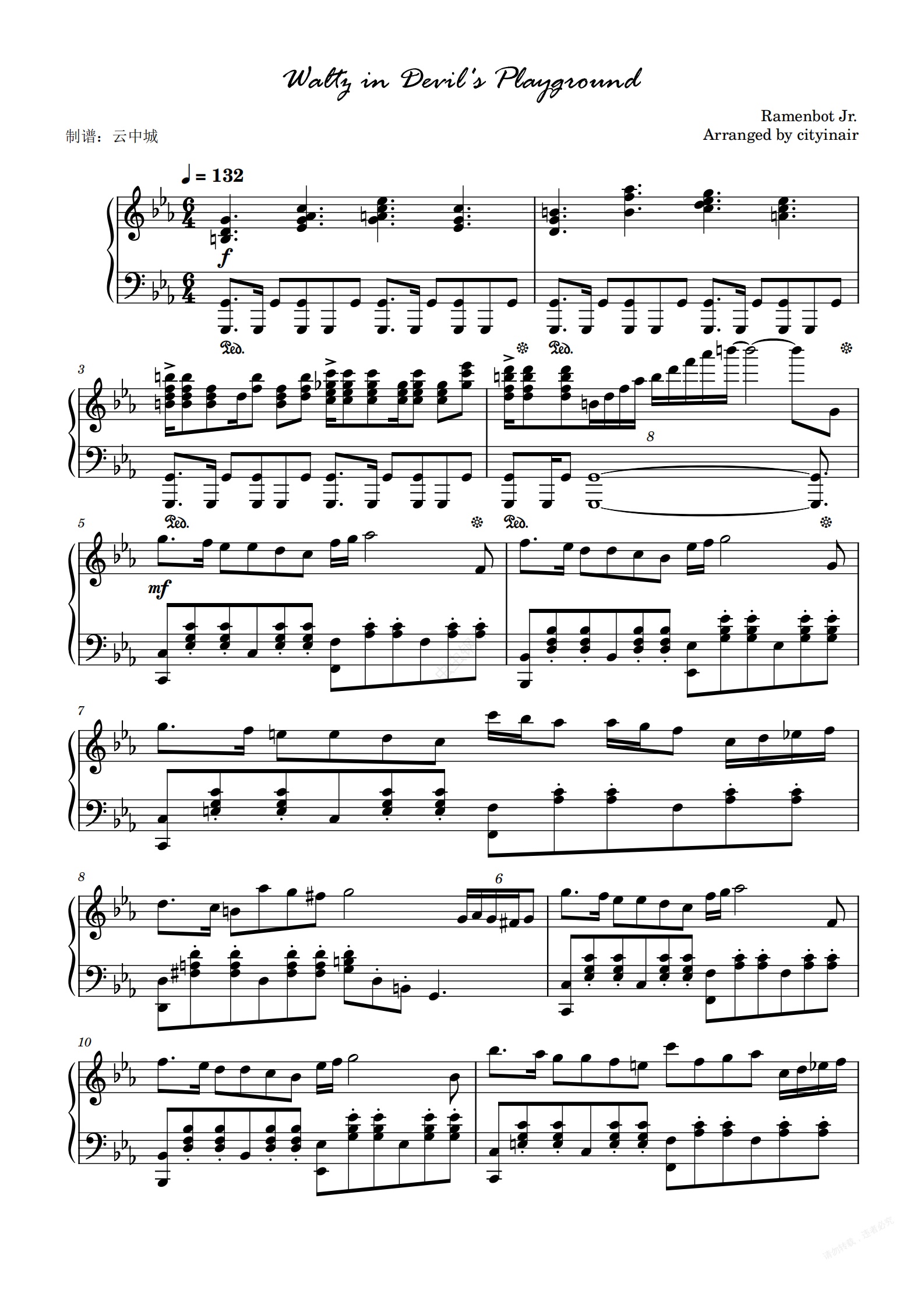 钢琴谱:Waltz in Devil's Playground from Deemo