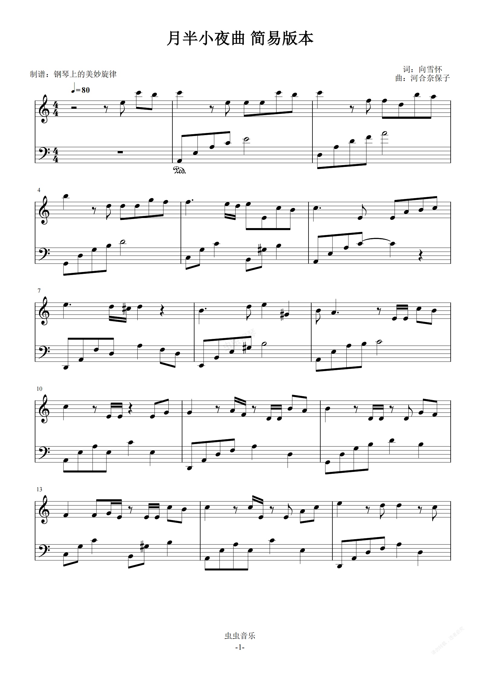 钢琴谱:月半小夜曲 C调简易版 容易弹