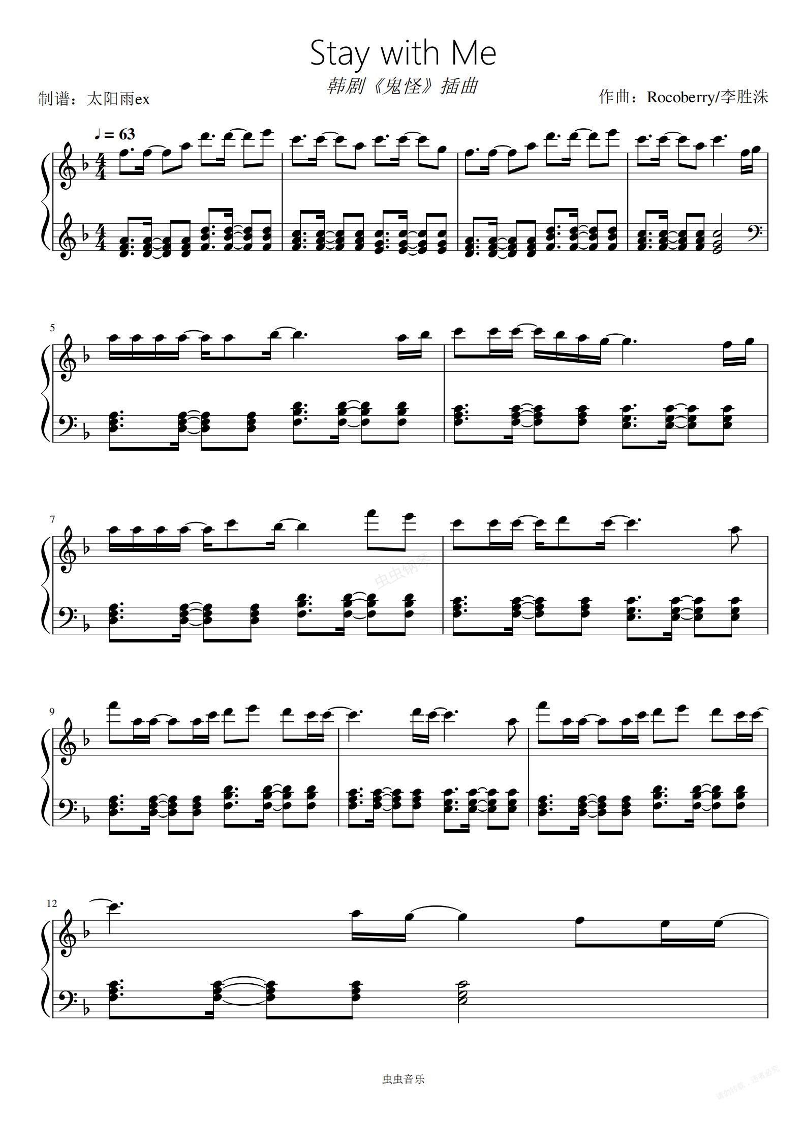 钢琴谱:Stay with Me 韩剧《鬼怪》插曲