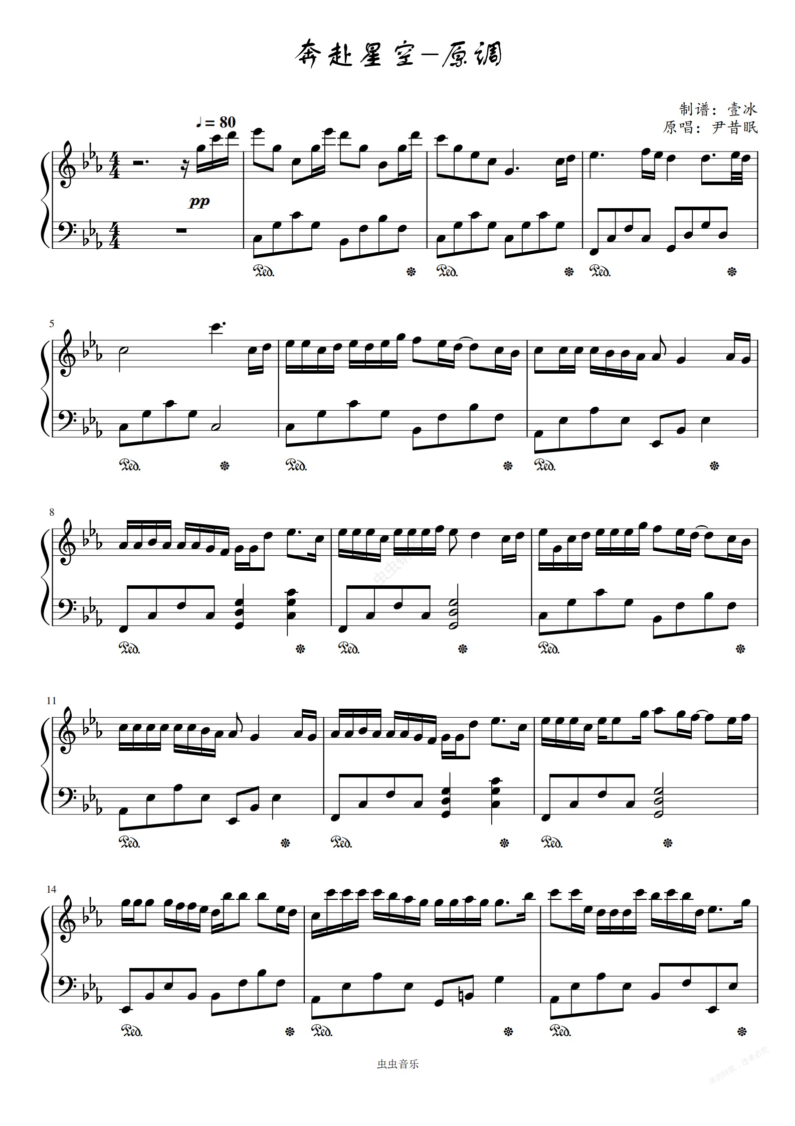 钢琴谱:奔赴星空//尹昔眠-原调版