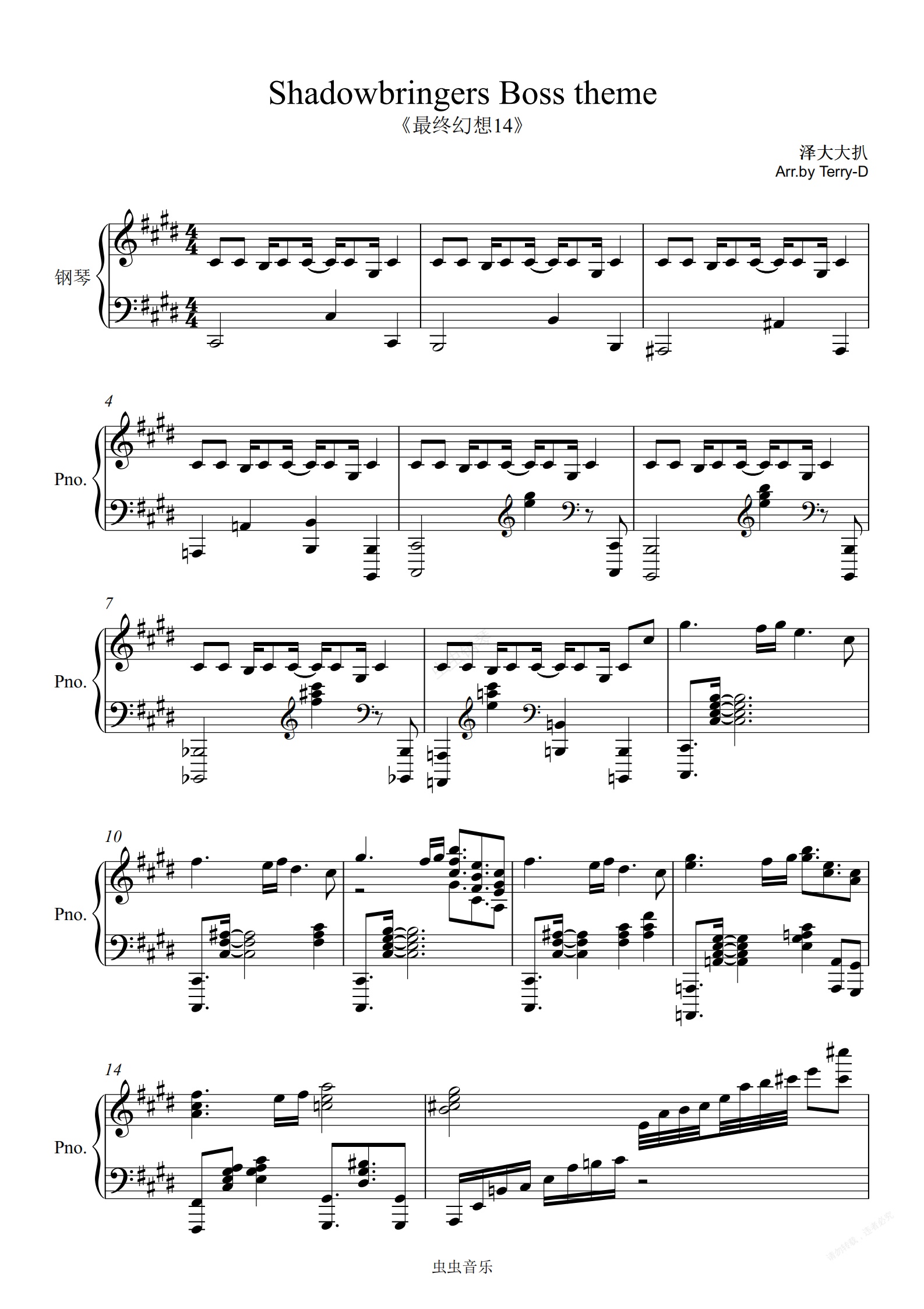 钢琴谱:Shadowbringers Boss theme【最终幻想FF14】泽大大