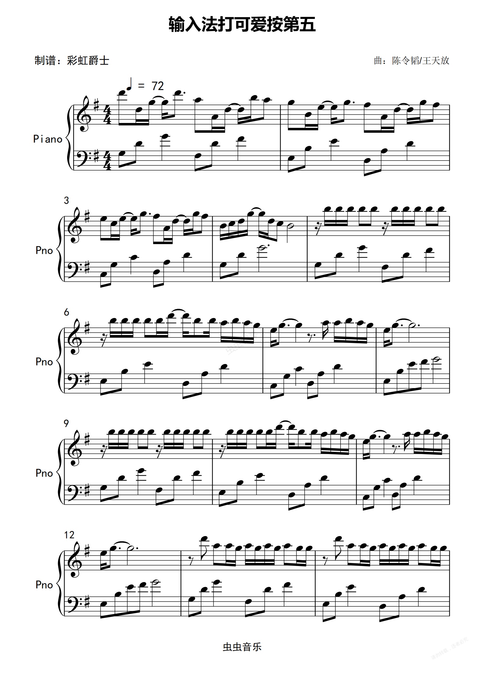 钢琴谱:输入法打可爱按第五-简单版--创造营2021