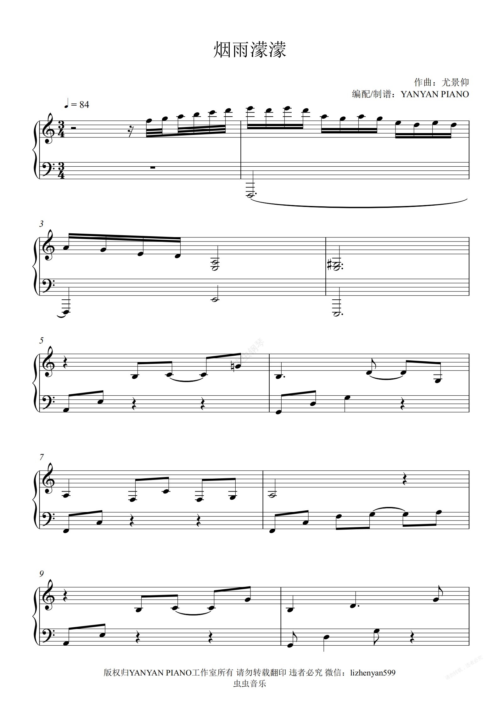 钢琴谱:情深深雨濛濛【烟雨濛濛】赵薇