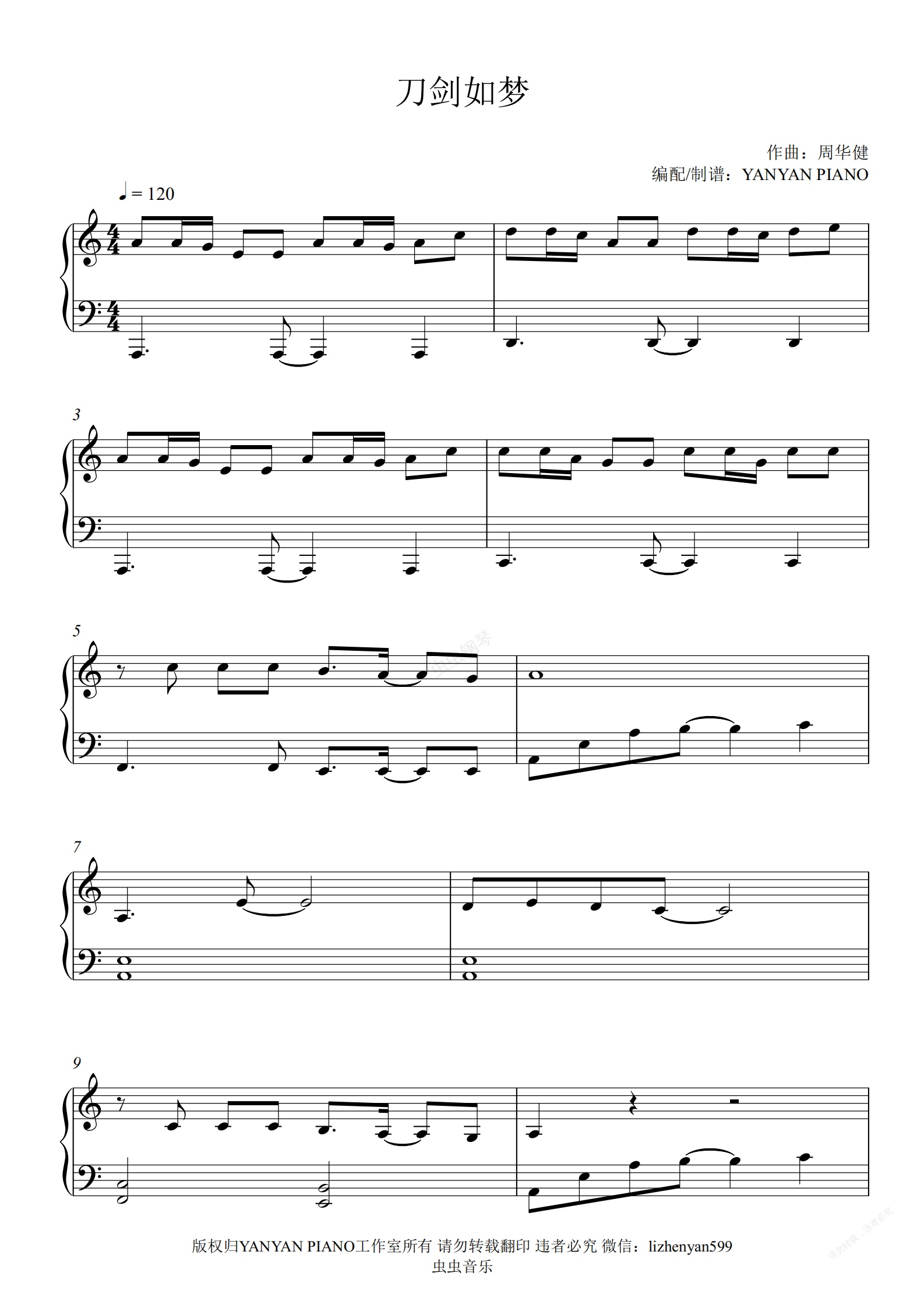 钢琴谱:周华健【刀剑如梦】好听易弹