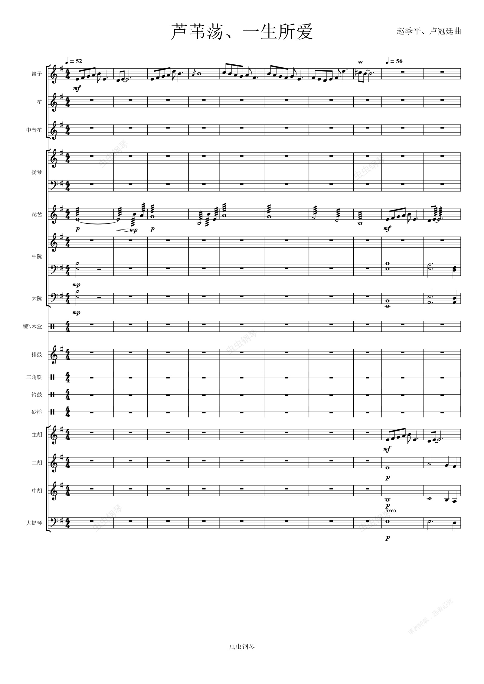 钢琴谱:芦苇荡、一生所爱室内乐