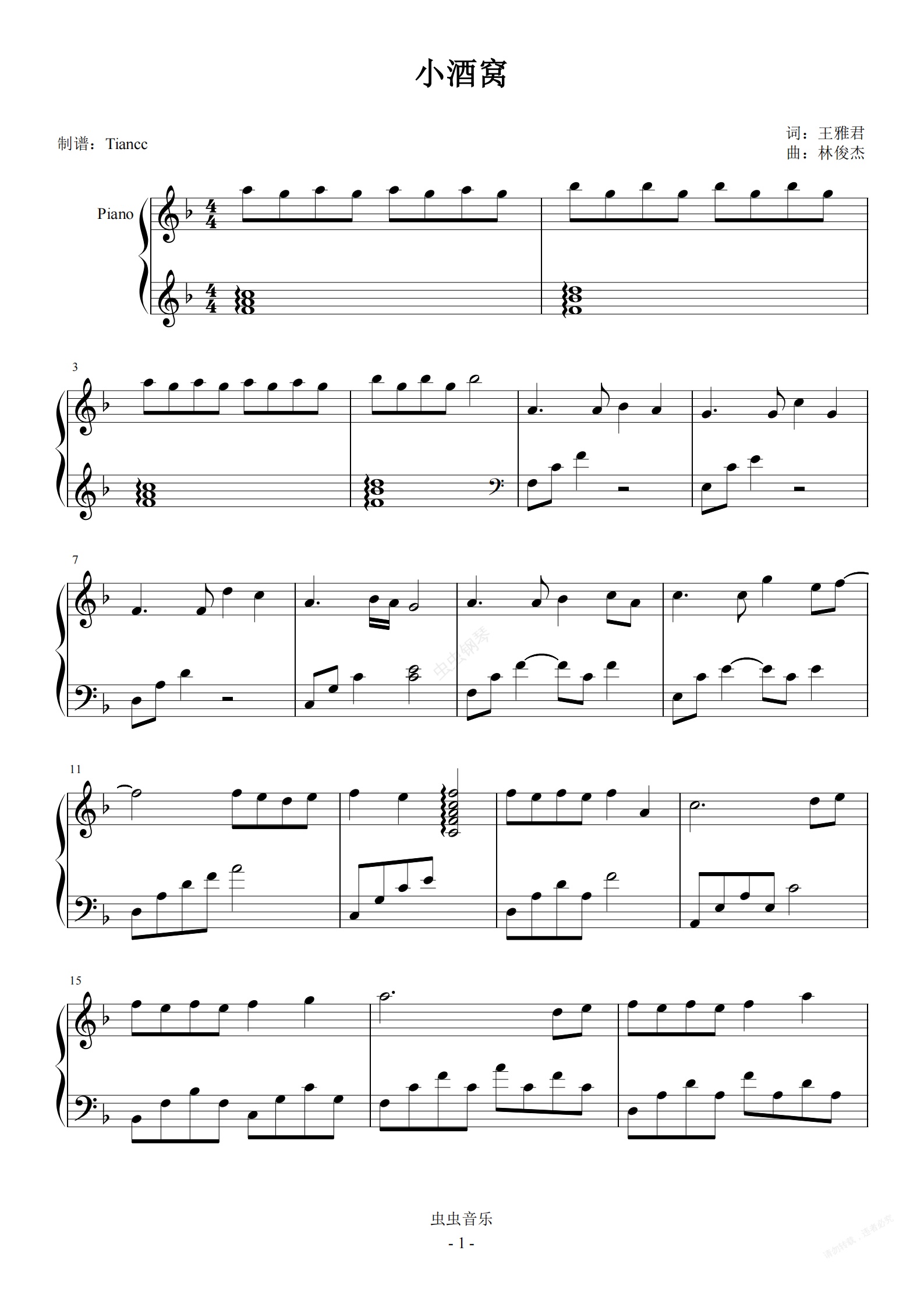 钢琴谱:《小酒窝》林俊杰,拜厄难度,简单好听