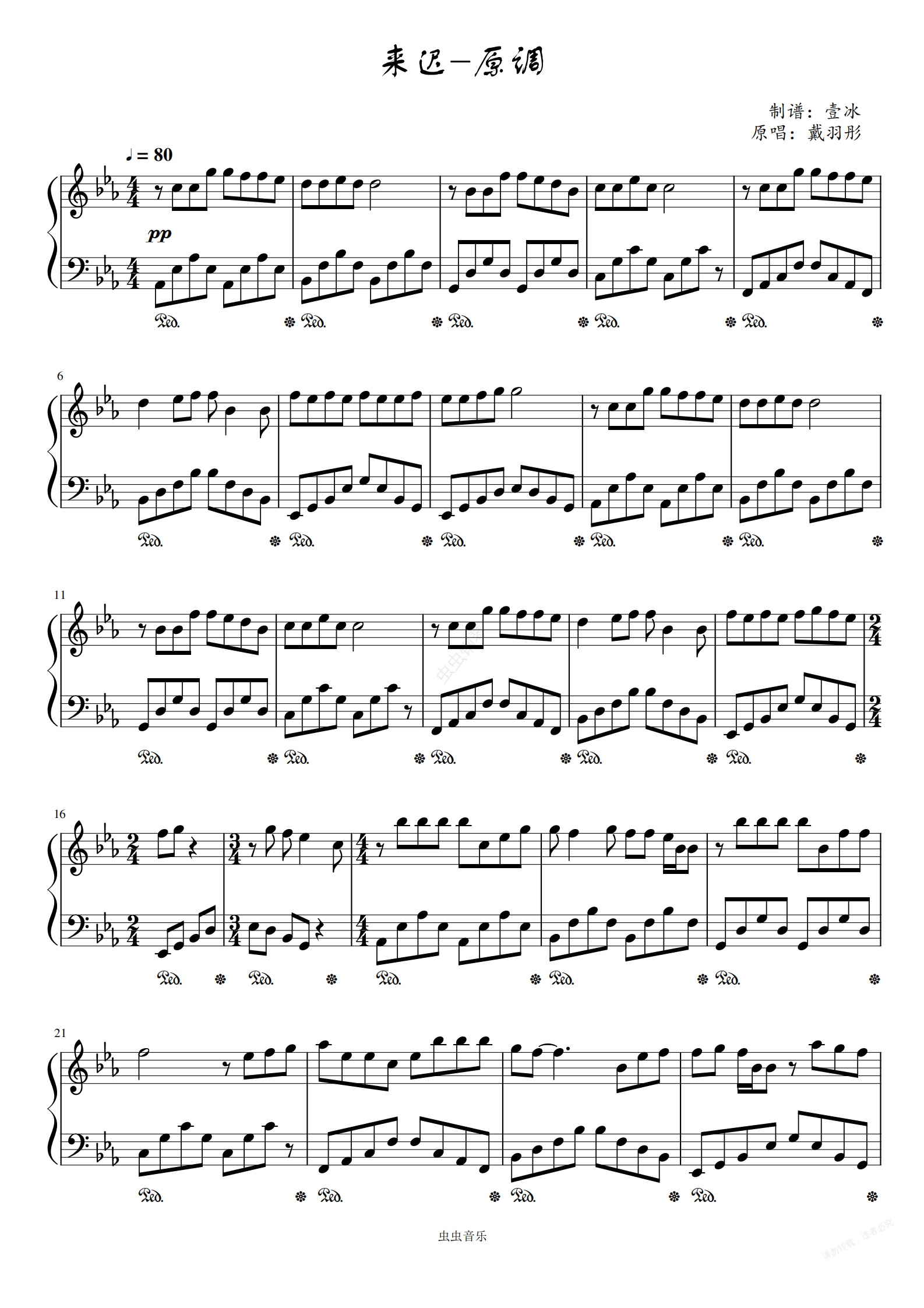 钢琴谱:来迟//戴羽彤-原调