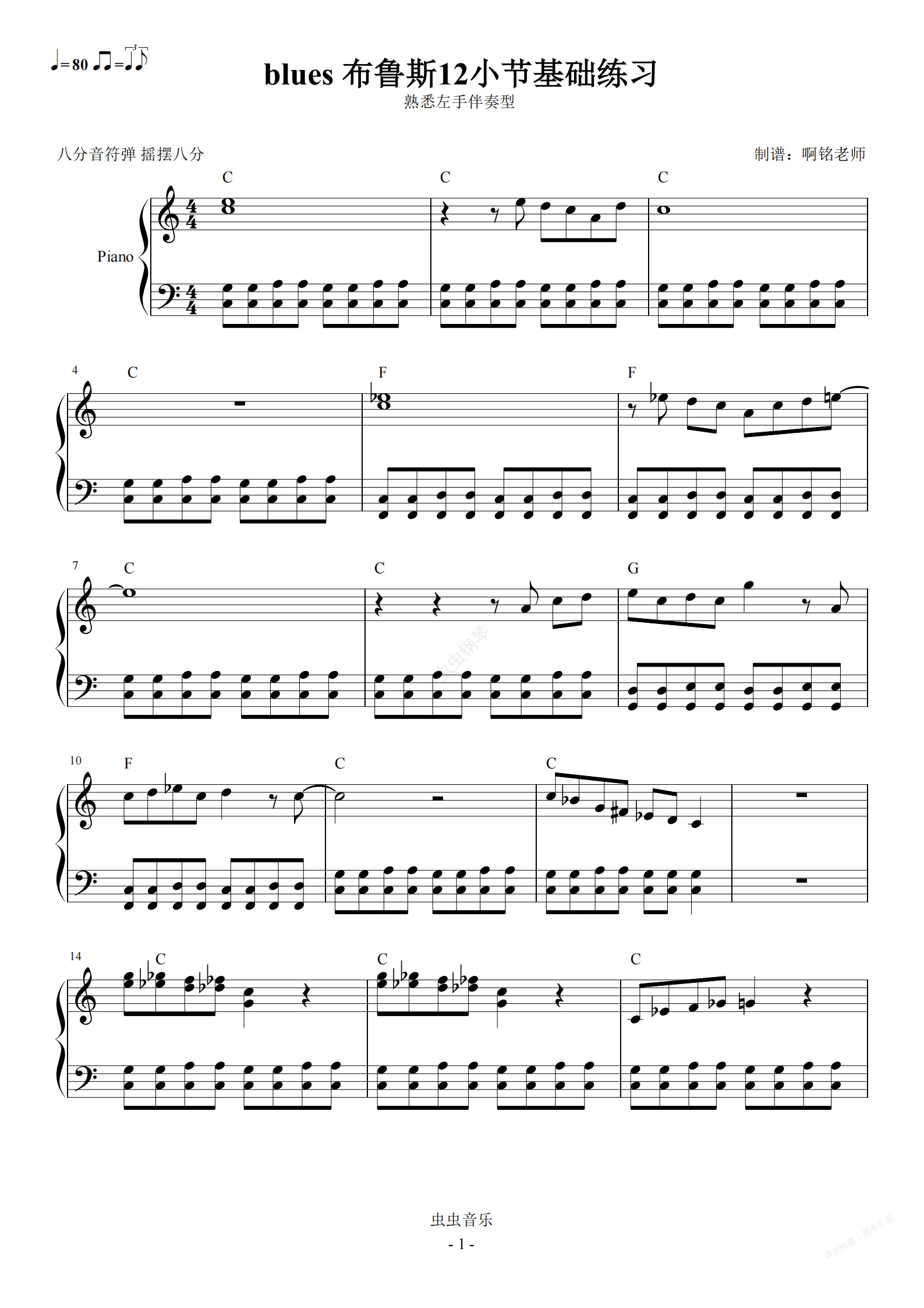 钢琴谱:blues 布鲁斯蓝调 基础练习8