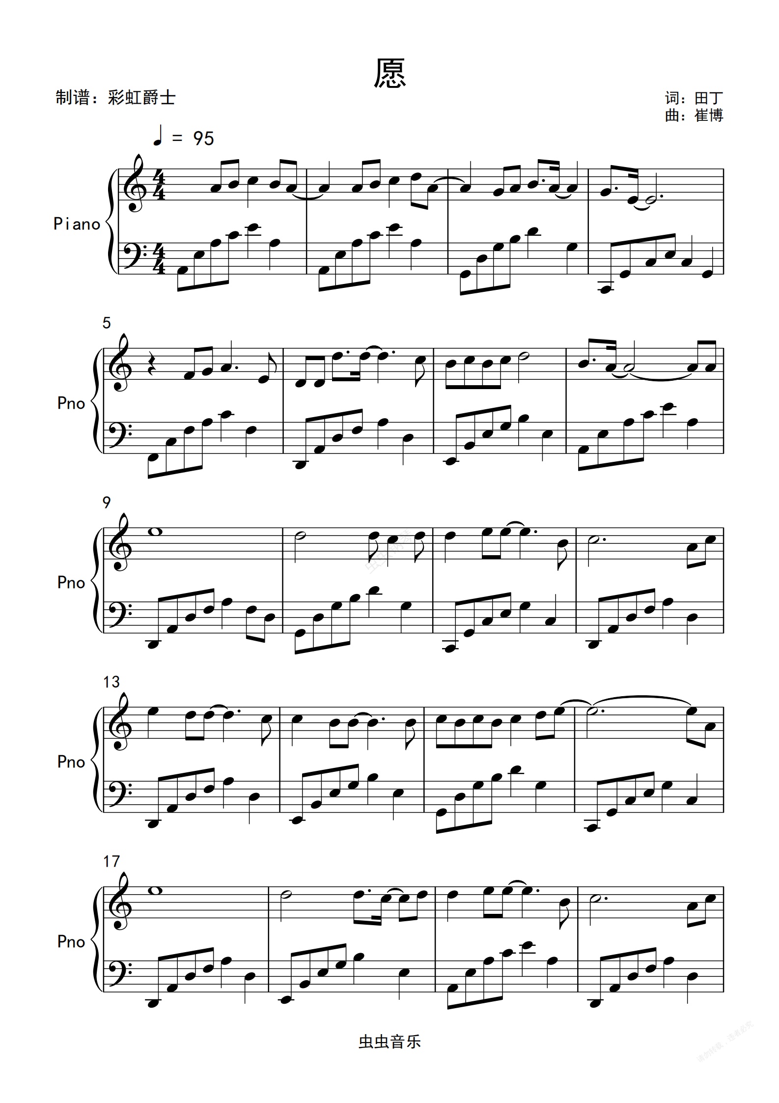 钢琴谱:愿-C调简单版-锦衣之下主题曲