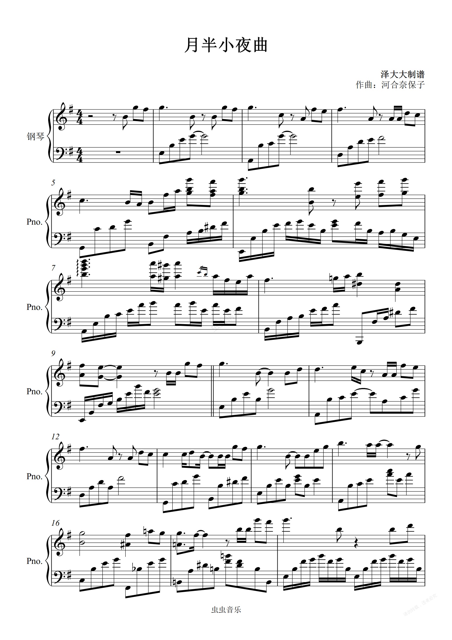 钢琴谱:月半小夜曲【幽兰键独奏版】泽大大扒
