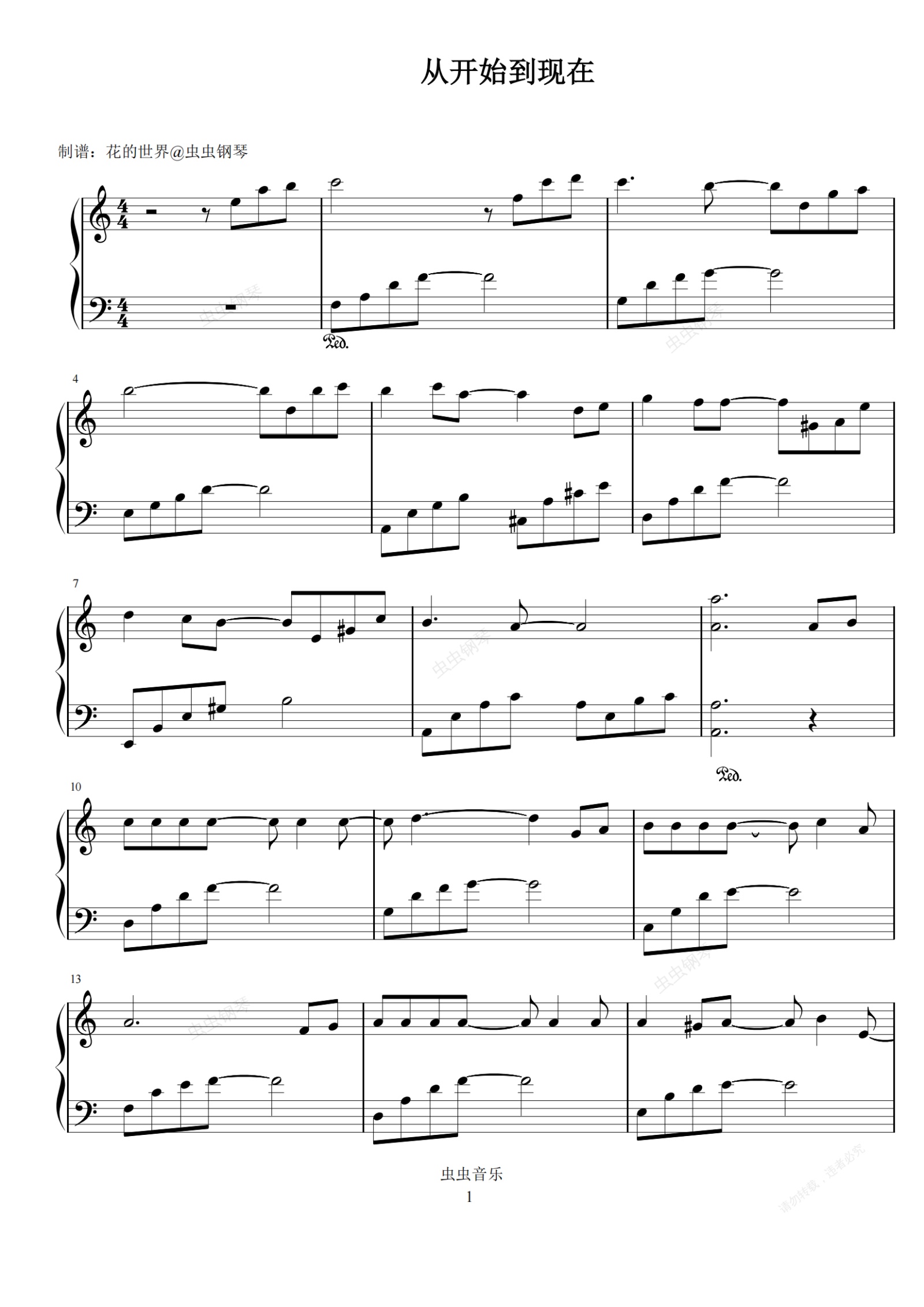 钢琴谱:从开始到现在 C调简易版 经典的回忆