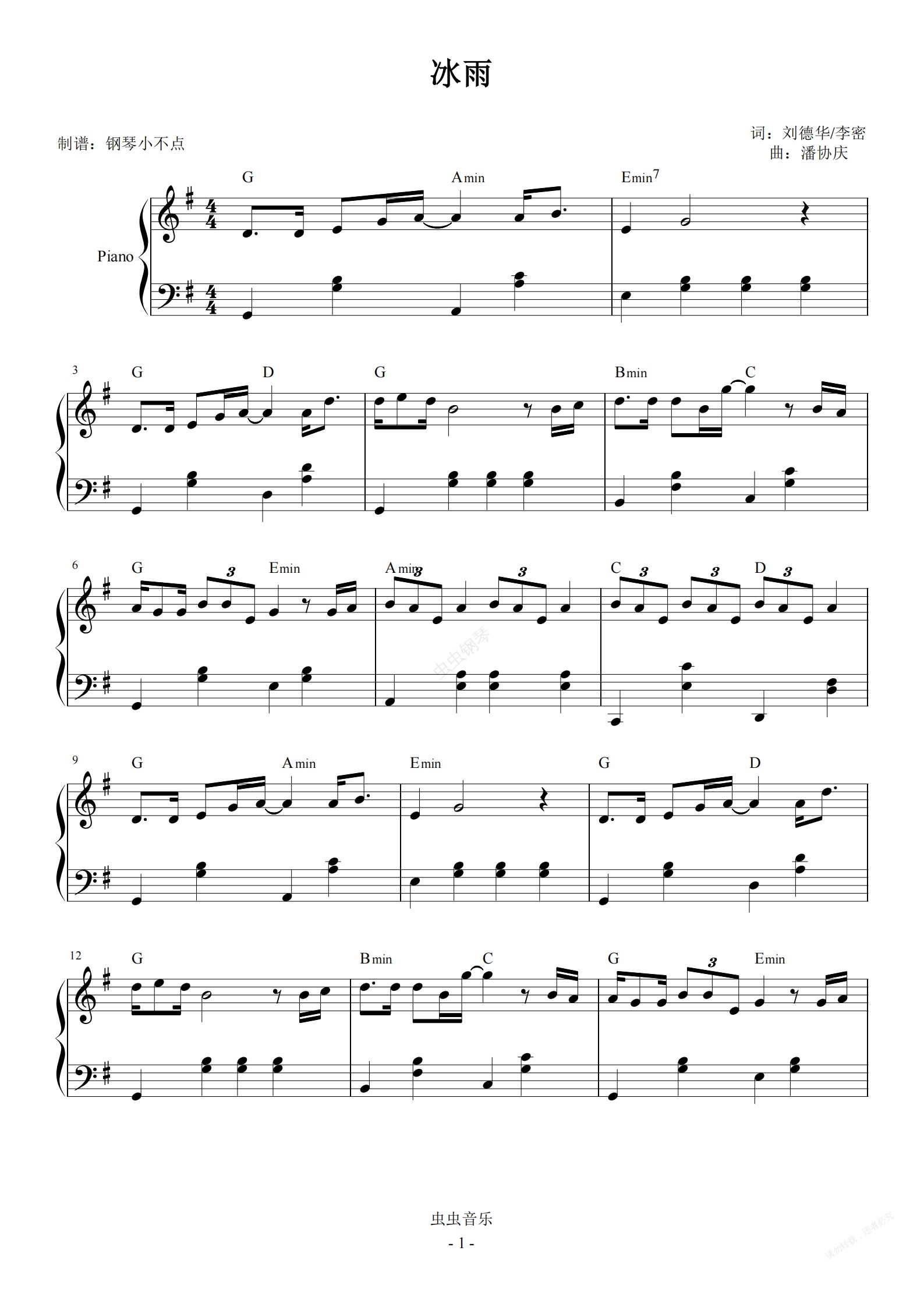 钢琴谱:冰雨【怀旧简易】