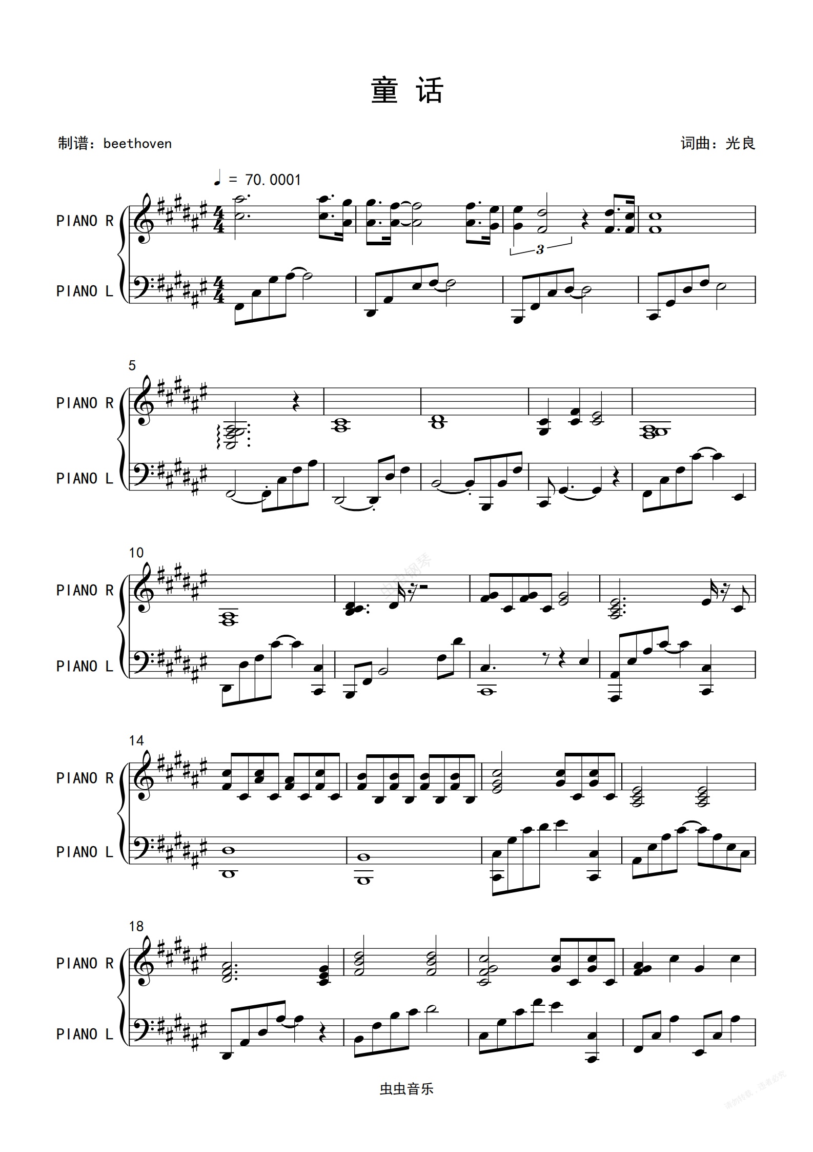 钢琴谱:童话-光良(钢琴弹唱)