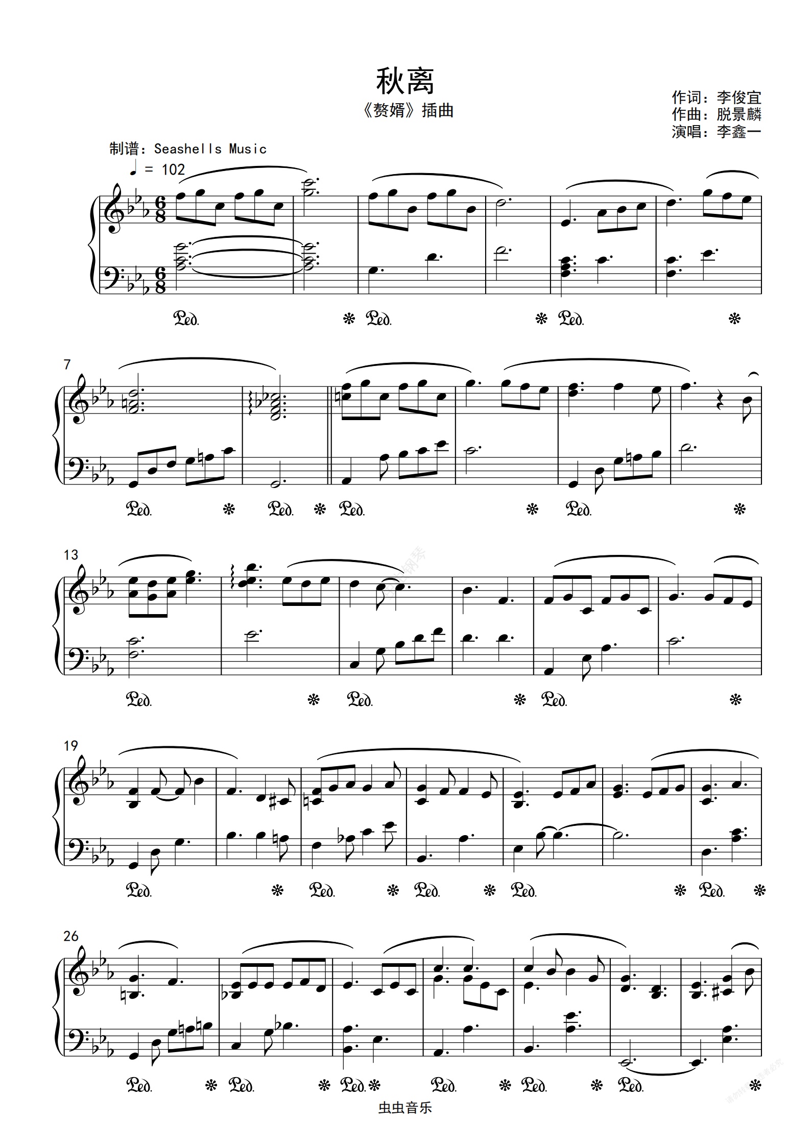 钢琴谱:李鑫一-《秋离》精编钢琴独奏 赘婿插曲