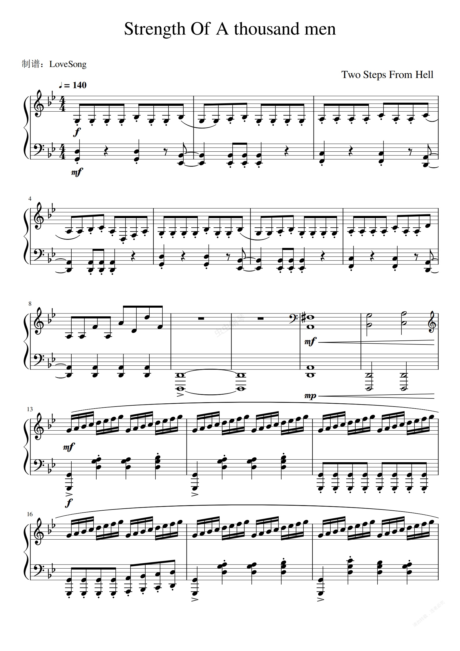 钢琴谱:Strenght Of A thousand men 背景音乐Two Steps From Hell