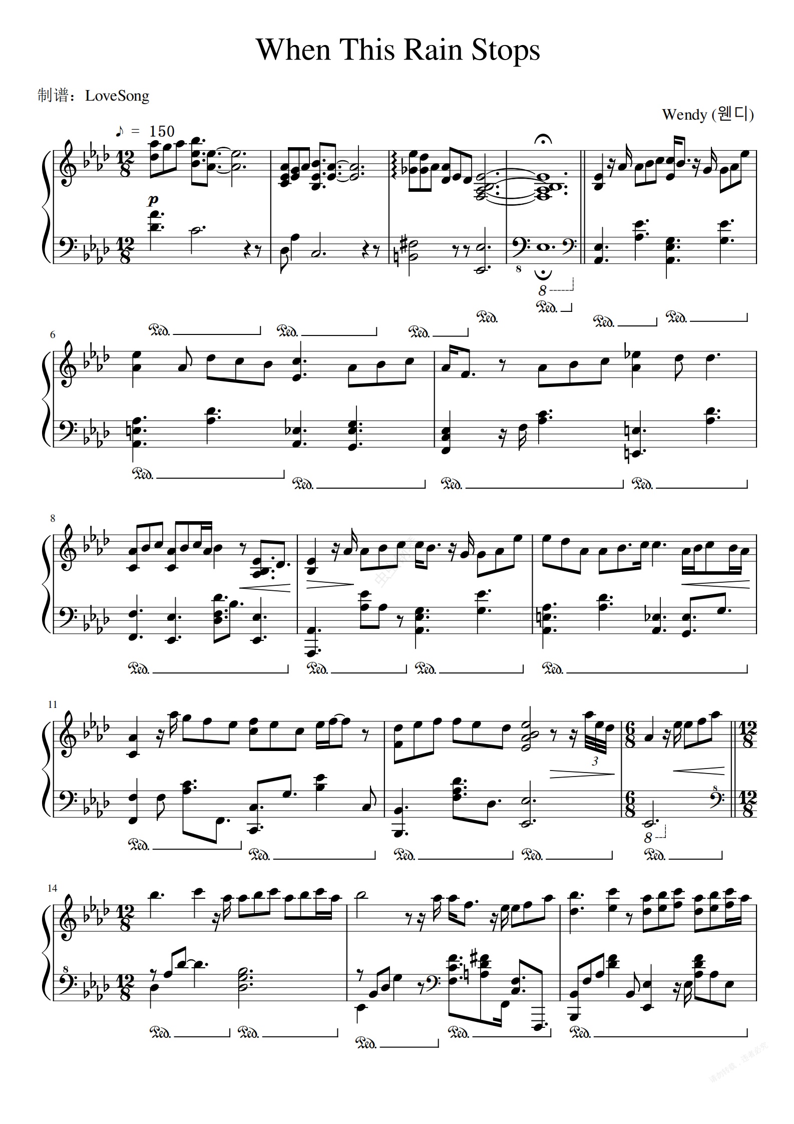 钢琴谱:WENDY - When This Rain Stops