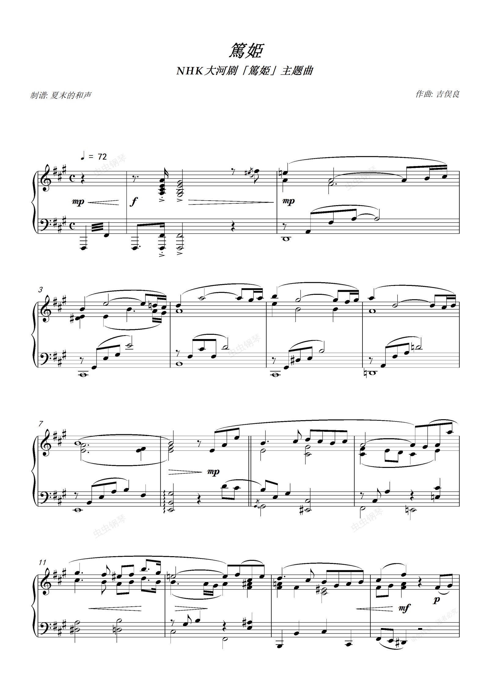 钢琴谱:「笃姬」主题曲 - 吉俣良 - 大河剧篤姫