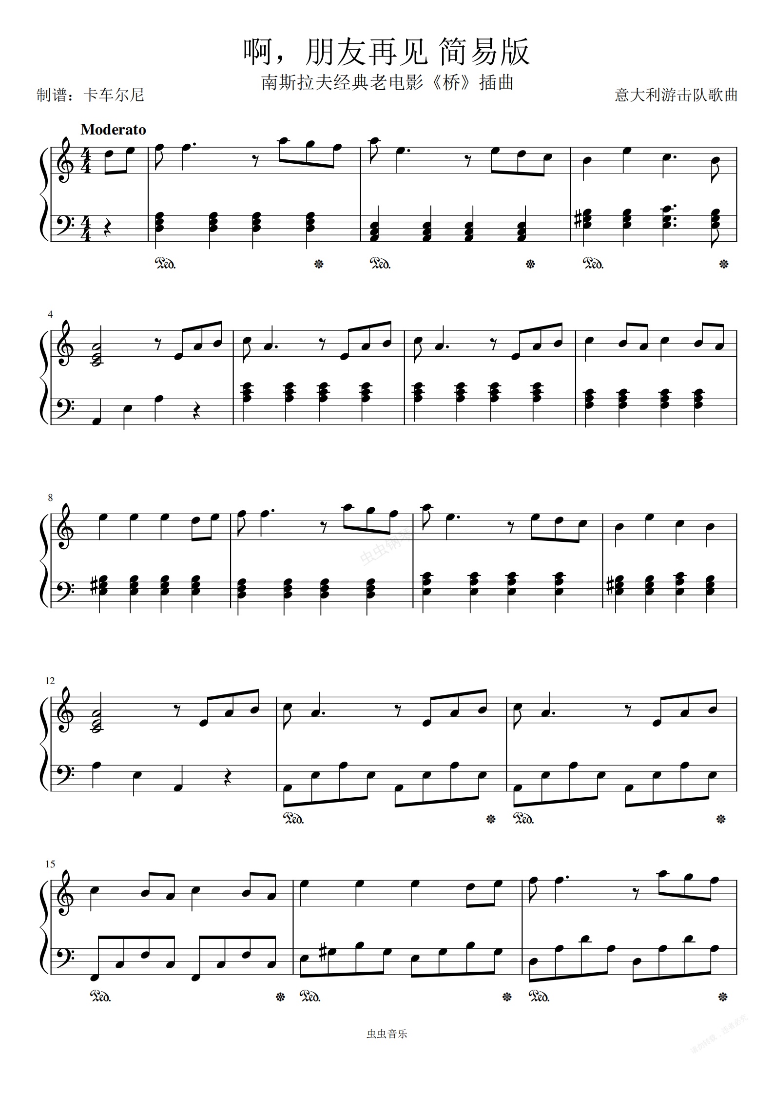 钢琴谱:《啊朋友再见》 电影《桥》插曲 C调简易版