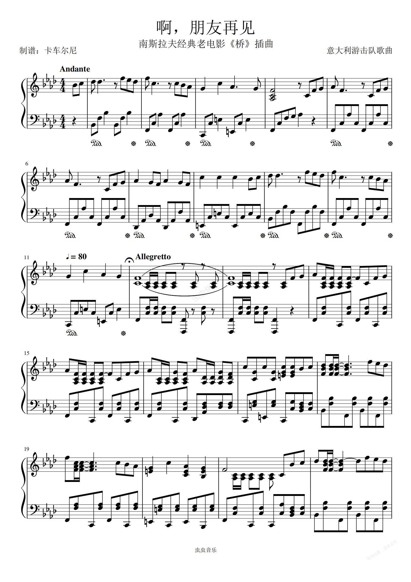 钢琴谱:南斯拉夫电影《桥》插曲《啊朋友再见》 演奏版