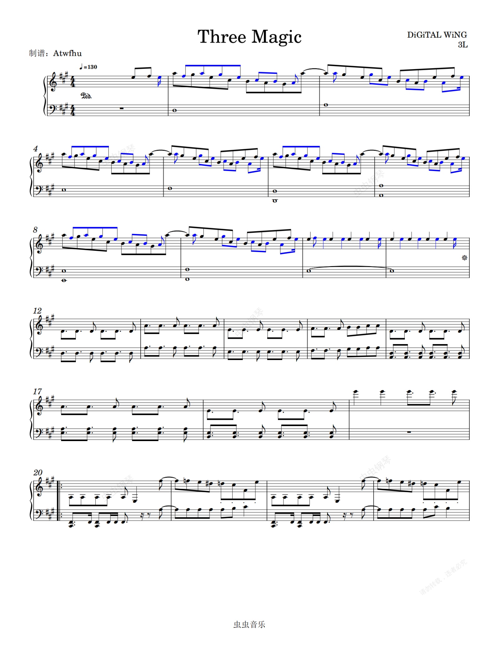 钢琴谱:【东方project】Three Magic -DiGiTAL WiNG/3L
