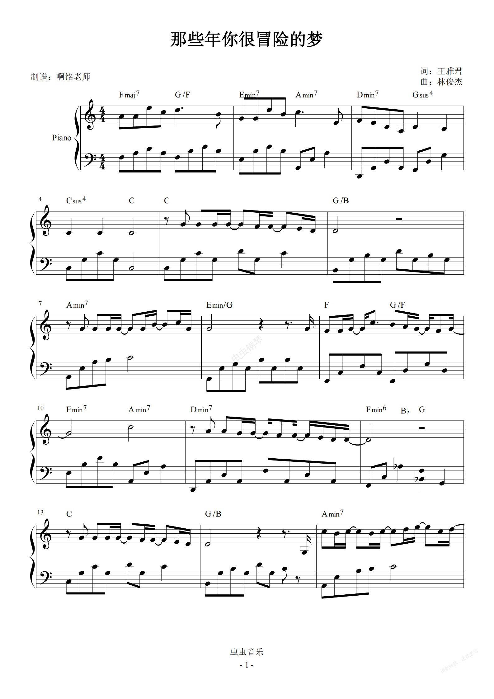 钢琴谱:那些年你很冒险的梦【简易 动听】